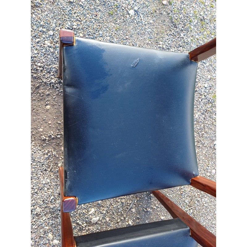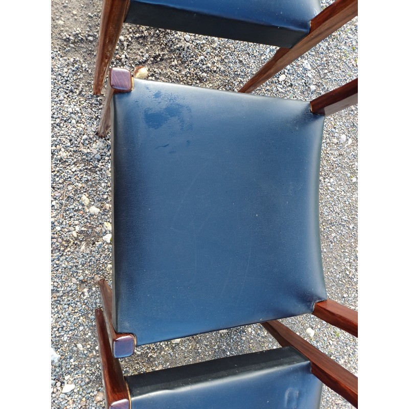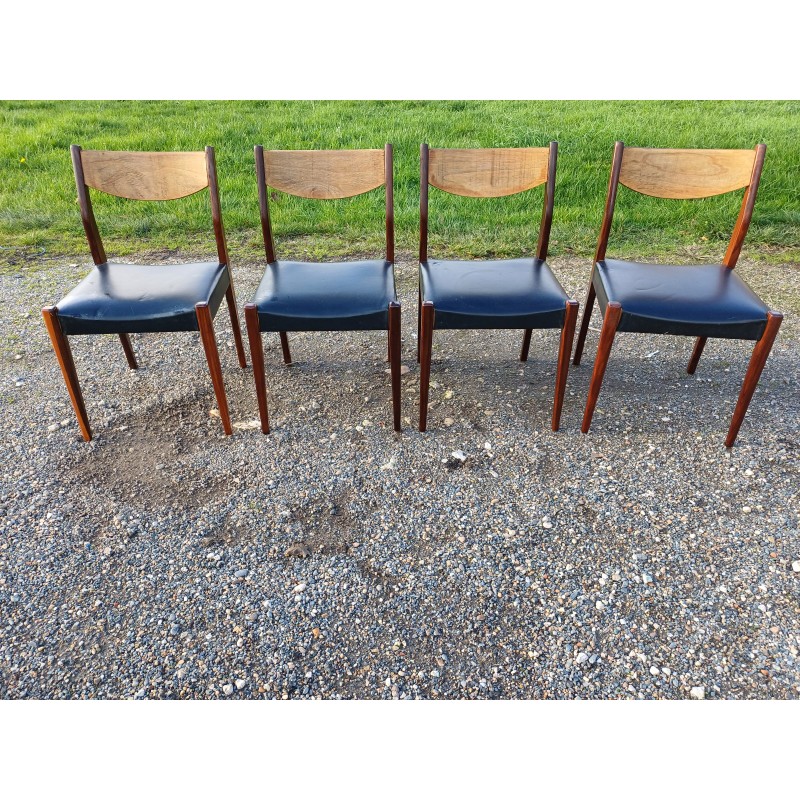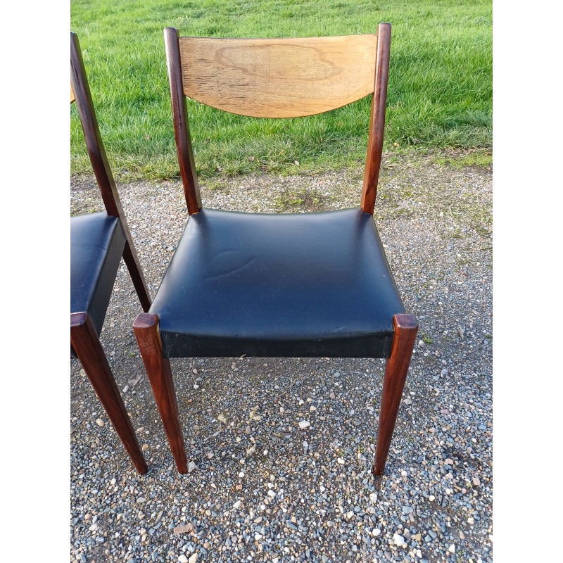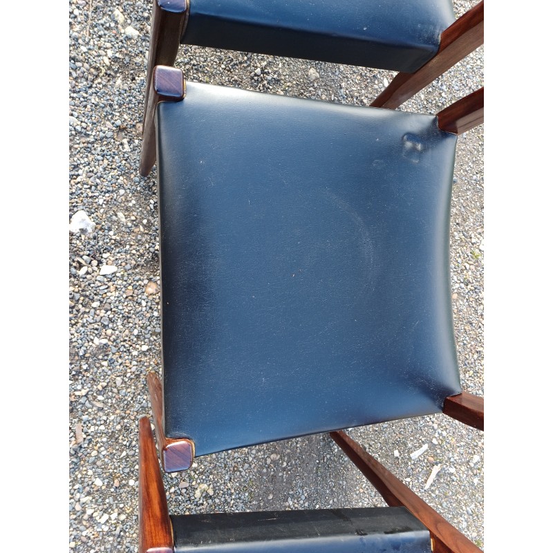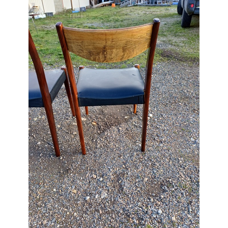 4 Chaises Baumann Vintage des Années 60 , Bois Exotique et Hètre , Assise Skai Noir , Haut : 83 cm , Haut d'assise : 46 cm , long et larg : 51 cm sur 46 cm , trés bon ètat sauf un accroc au Skai sur l'une des chaises