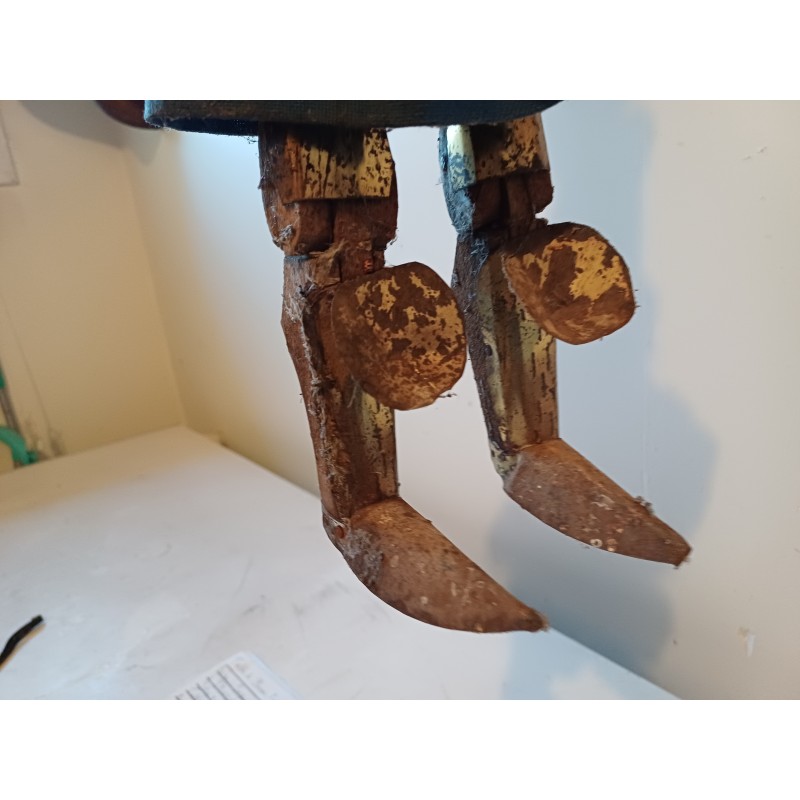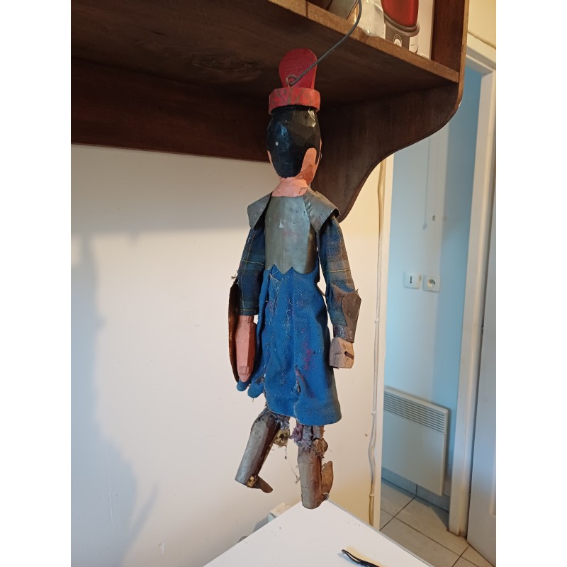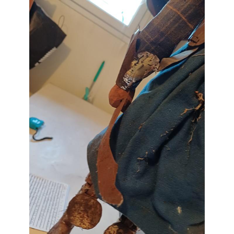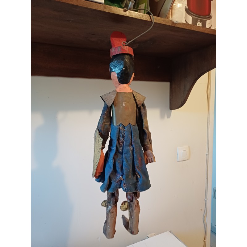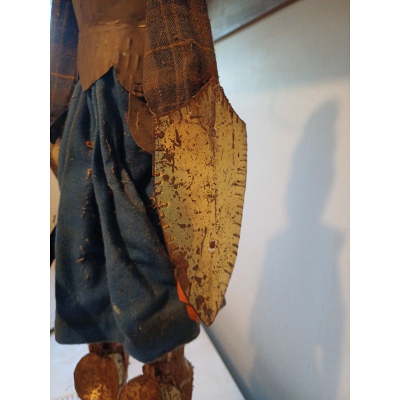 Marionnette Ancienne Asie Mineure " Guérrier " , Bois , Fer , Tissus ,Haut : 60 cm , long et larg : 25 cm sur 8 cm , poids : 500 g , Très bon état