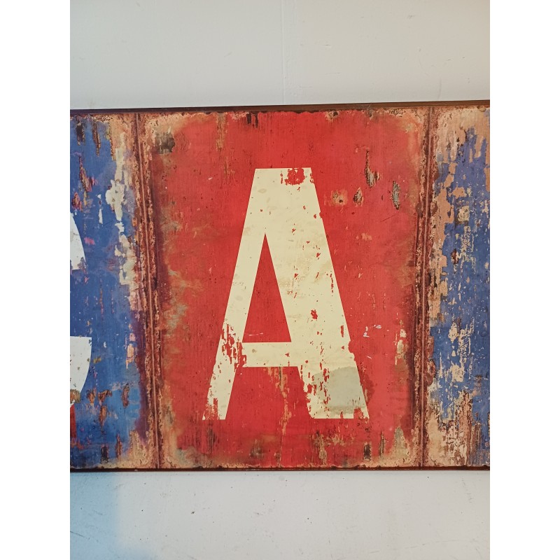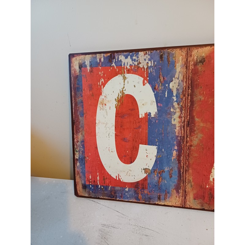 Décoration Publicitaire " Café" en Tole , Haut 30 cm , long et larg : 90 cm sur 1 cm , très bon état