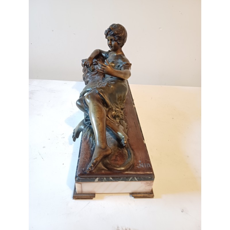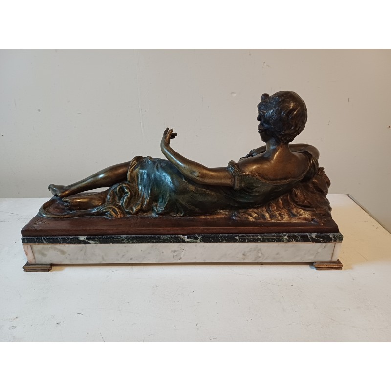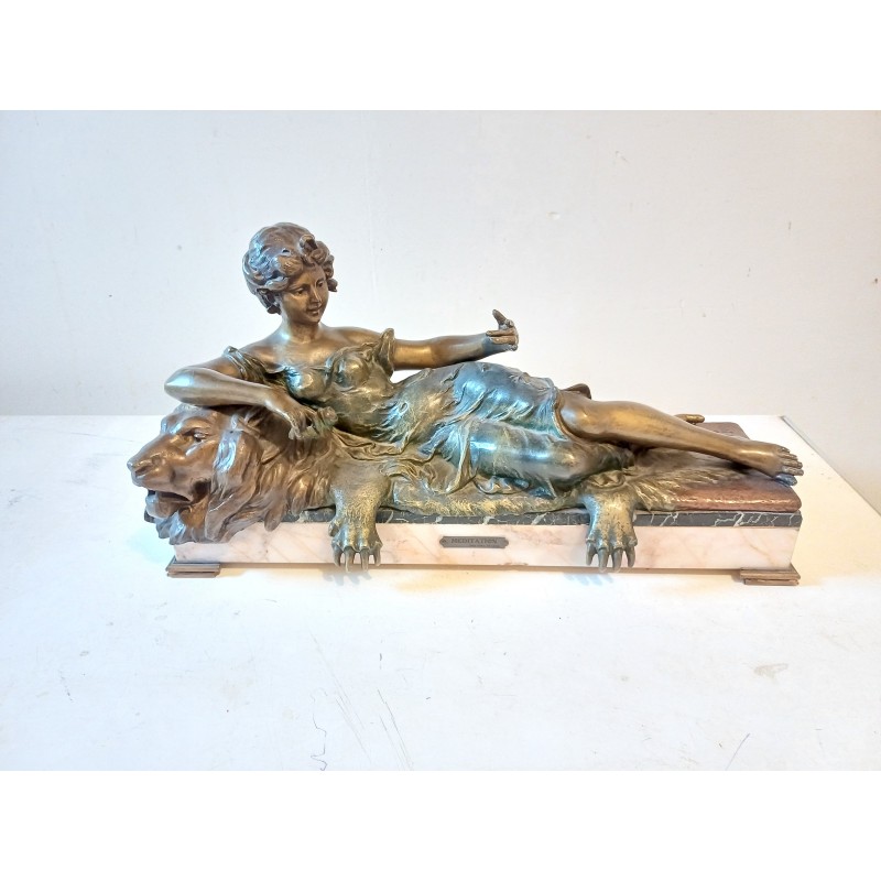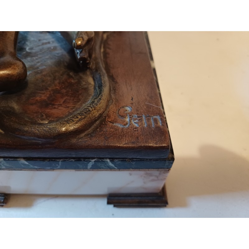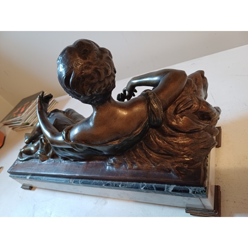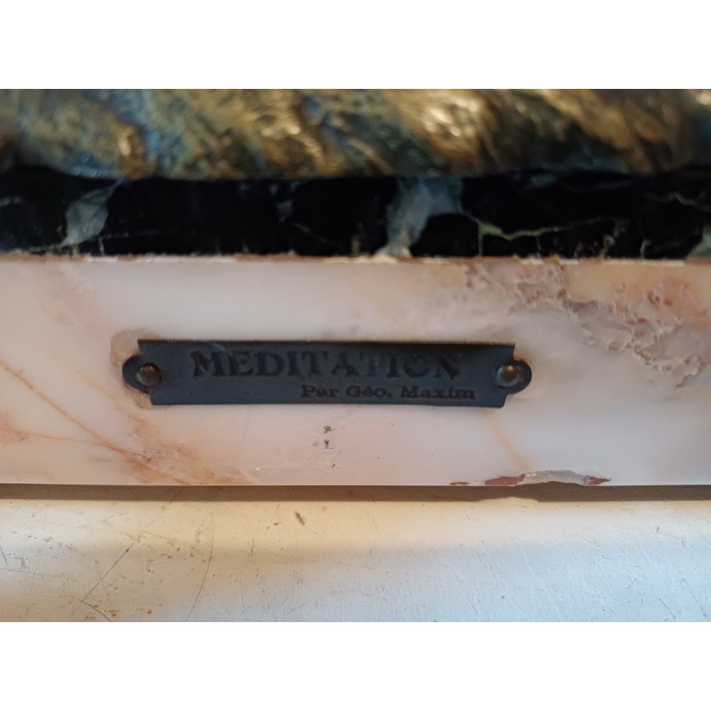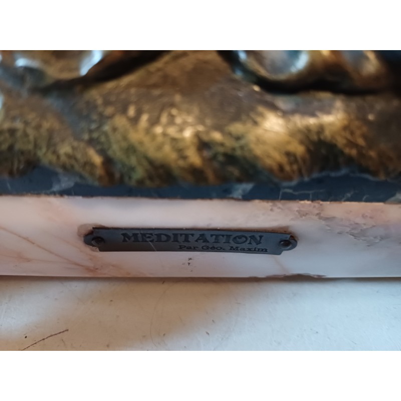 Régule sur Marbre Méditation par Géo Maxim , Haut : 23 cm , long et larg : 46 cm sur 17 cm , poids : 11 Kg , très bon état