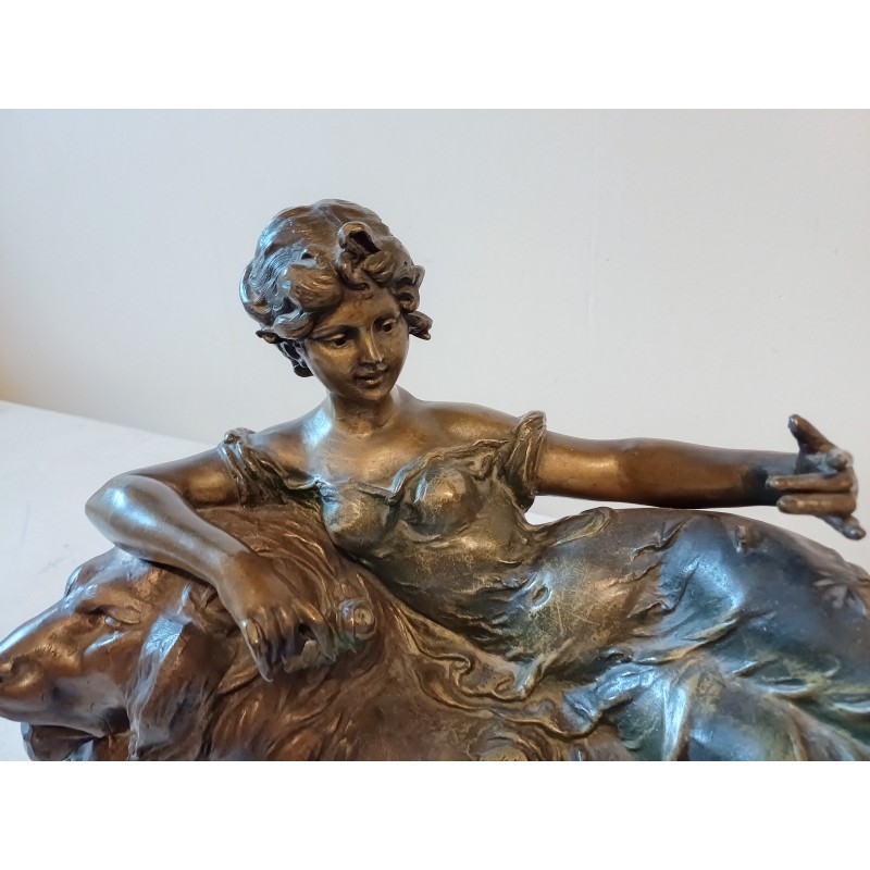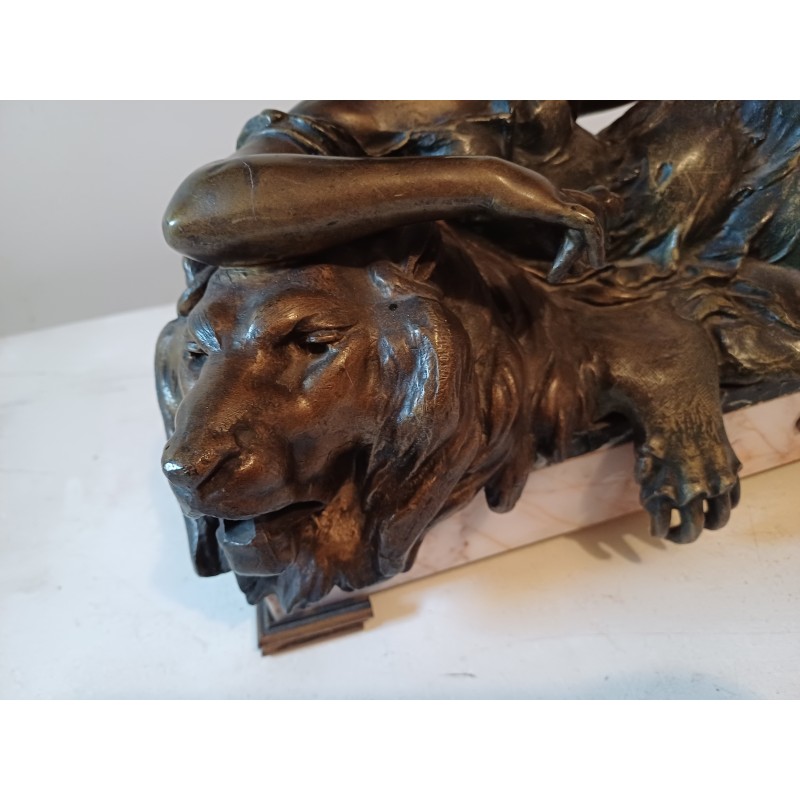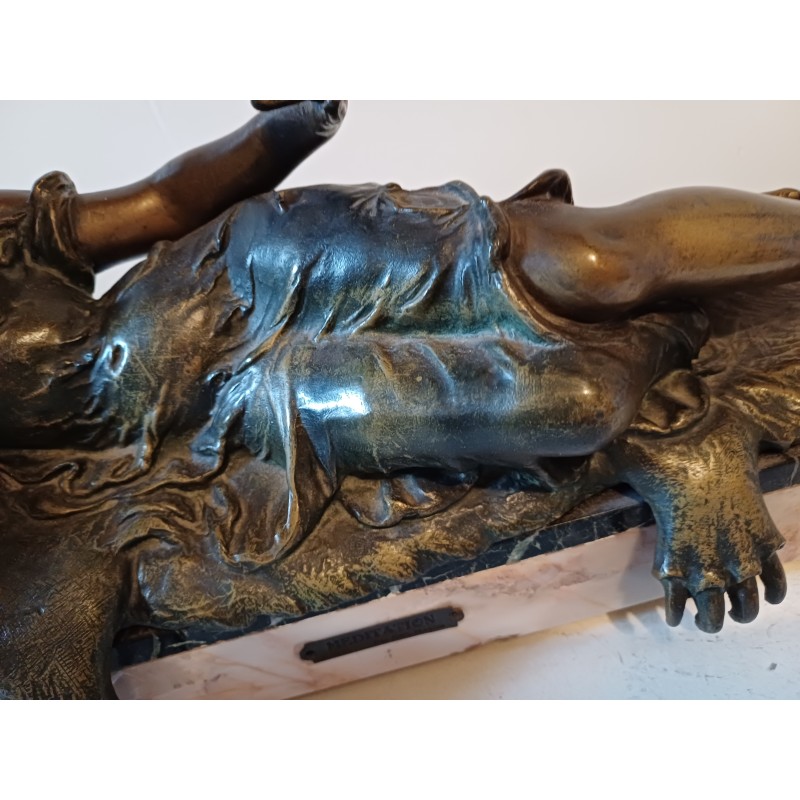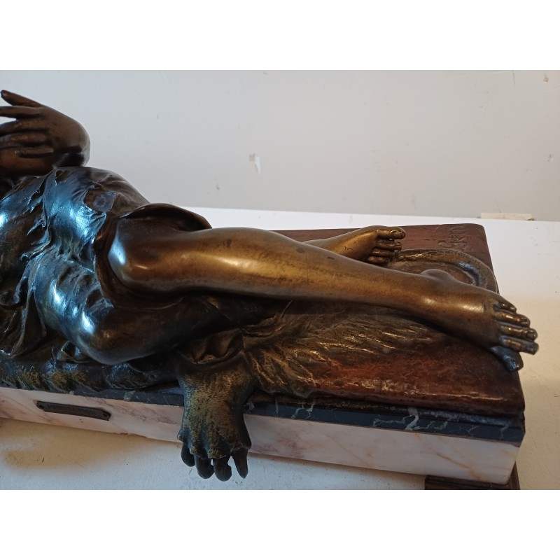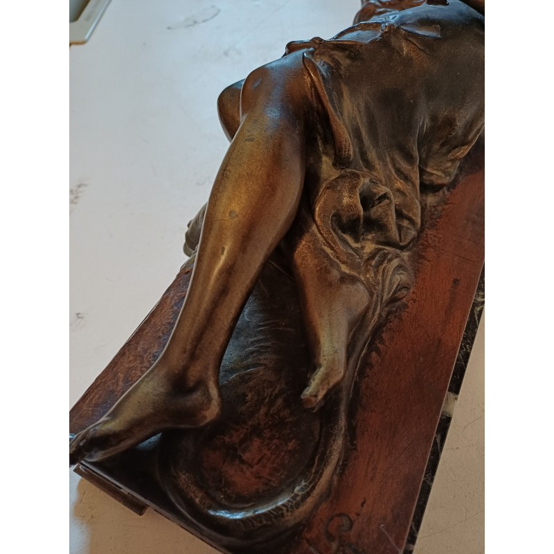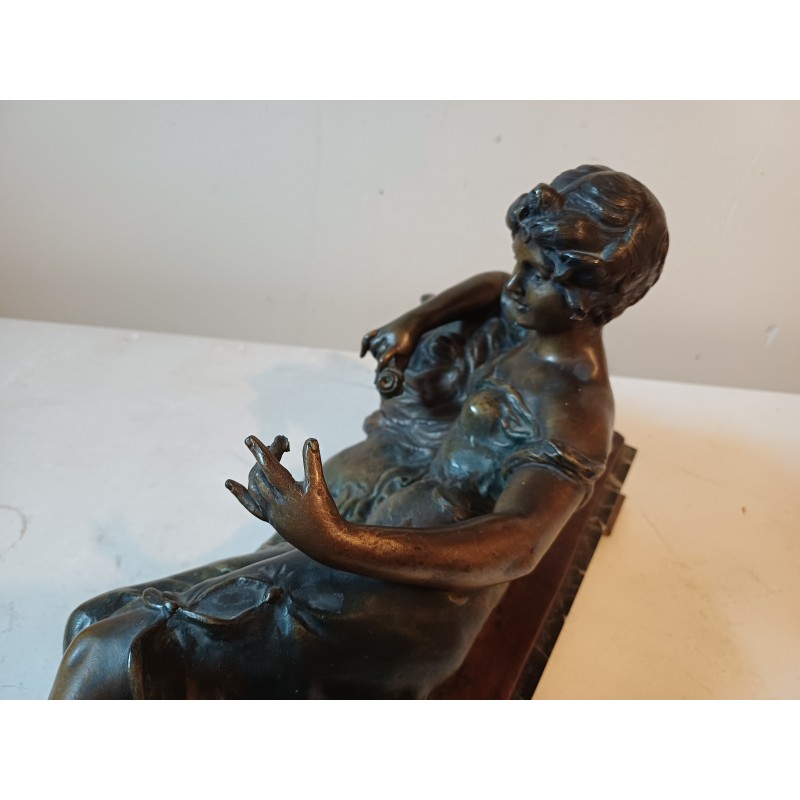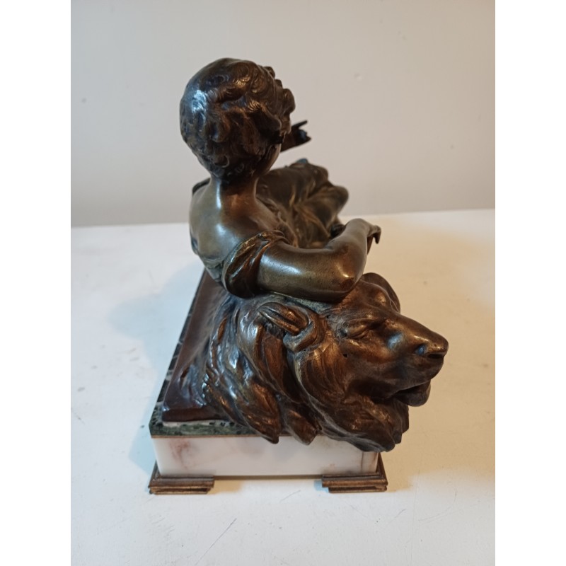 Régule sur Marbre Méditation par Géo Maxim , Haut : 23 cm , long et larg : 46 cm sur 17 cm , poids : 11 Kg , très bon état