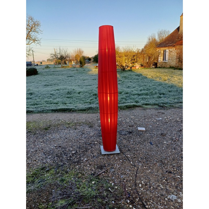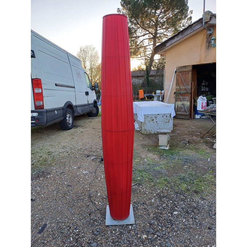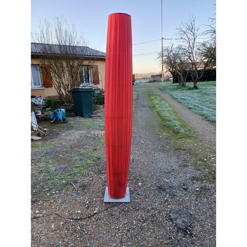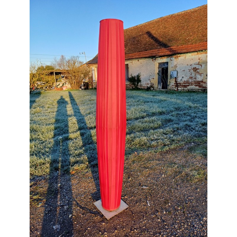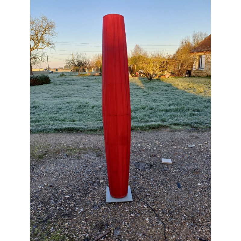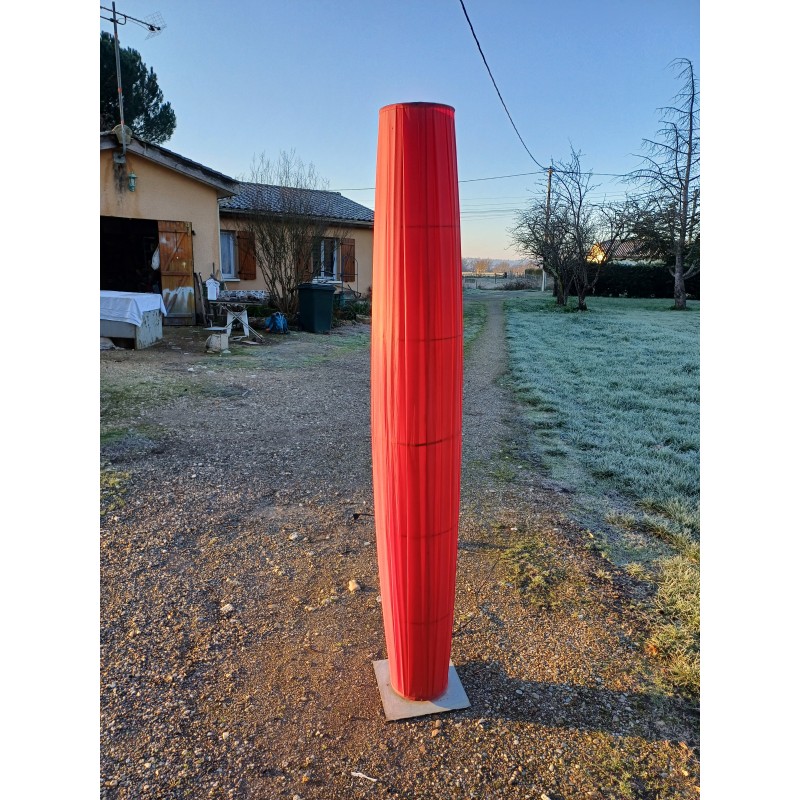 Lampe Vintage des Années 70 , Colonne sur Pied Métal et Tissus sur cerceaux métal , Haut : 190 cm , Diam : 32 cm , Poids : 5 Kg , Bon ètat