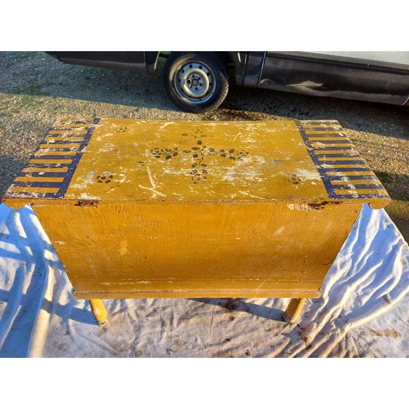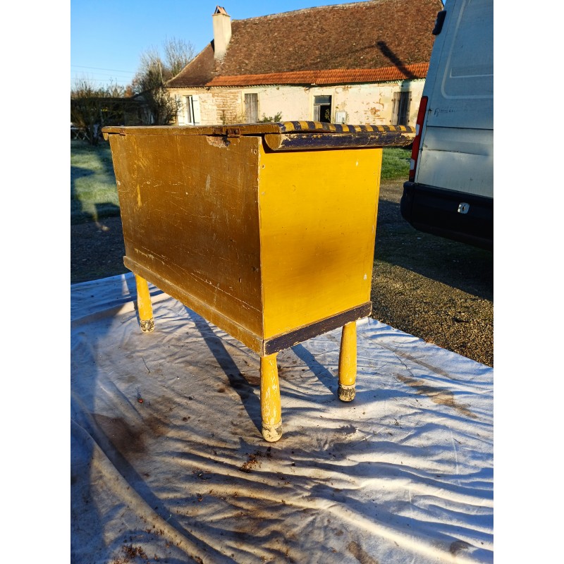 Meuble de Poupée Bois Ancien , 2 Tiroirs , 1 Coffre , Haut : 54 cm , long et larg : 70 cm sur 29 cm , Bon ètat dans son jus