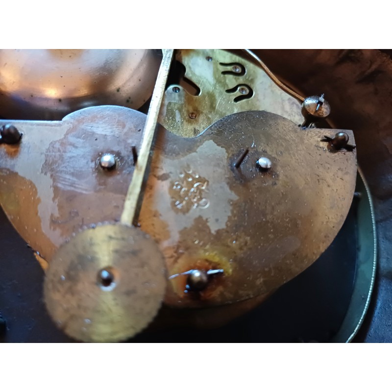 Horloge Murale 19 éme en Fonte , Laiton et verre , Haut : 61 cm , long et larg : 41 cm sur 9 cm , poids : 7,6 Kg , très bon état
