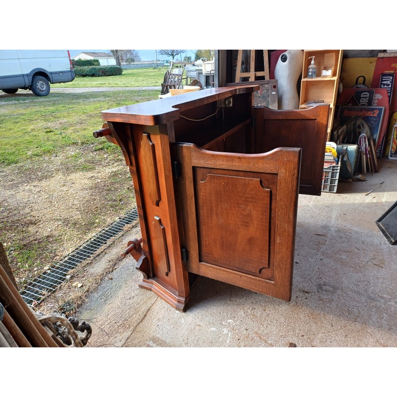 Comptoir Bar Chéne , Haut : 107 cm , long et larg : 152 cm sur 50 cm , 2 Portes a battants , étagères , très bon état