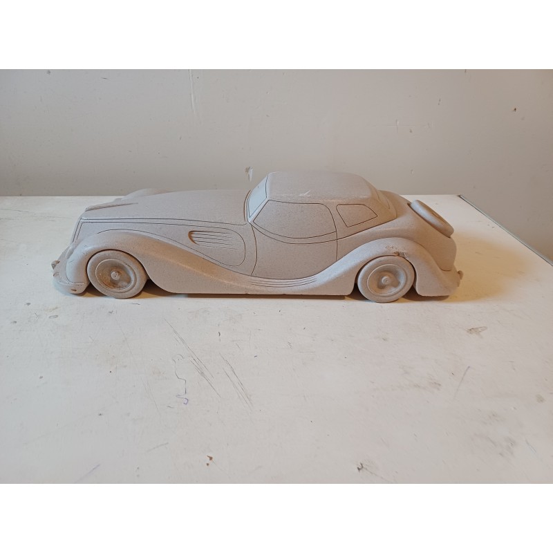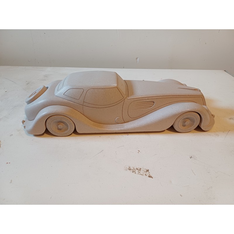 Voiture " Jaguar " en Pierre , travail de Compagnon . d'un seul Bloc , Haut : 10 cm , long et larg : 43,5 cm sur 16 cm , poids : 6 Kg , très bon état , signé avec une Estampille