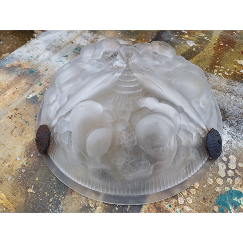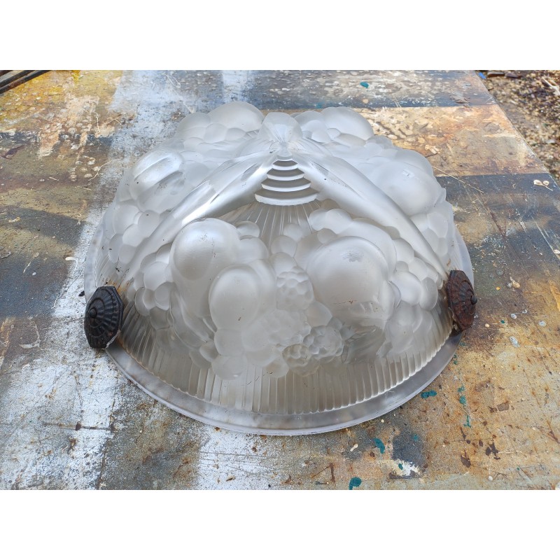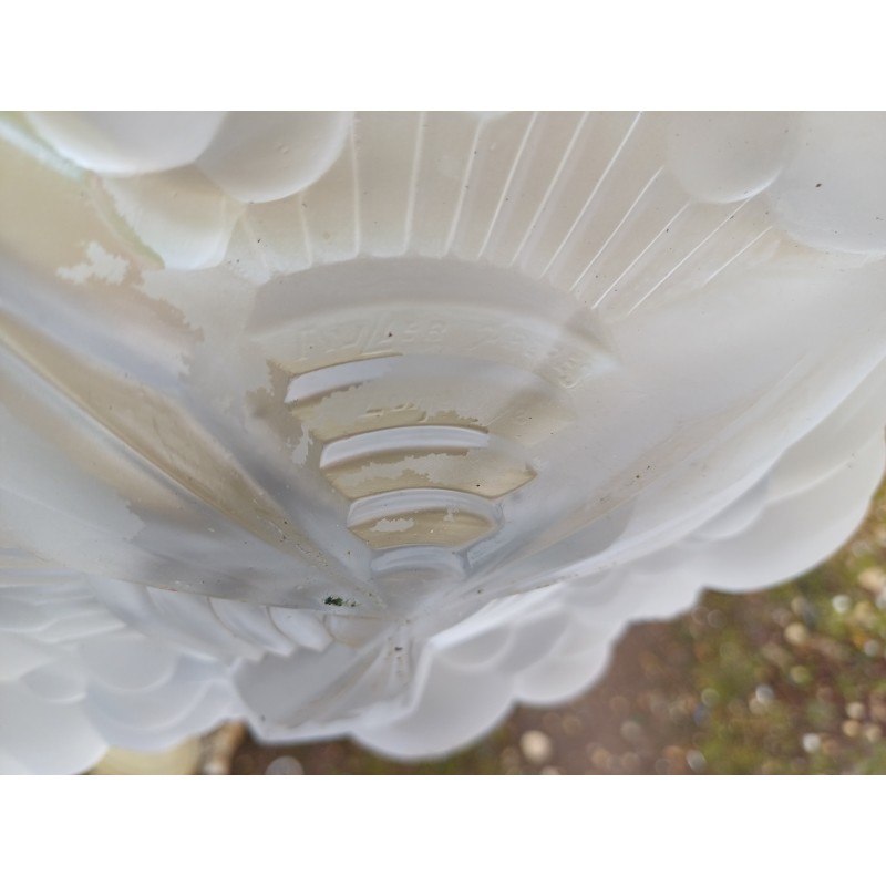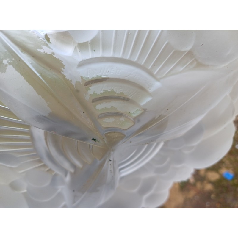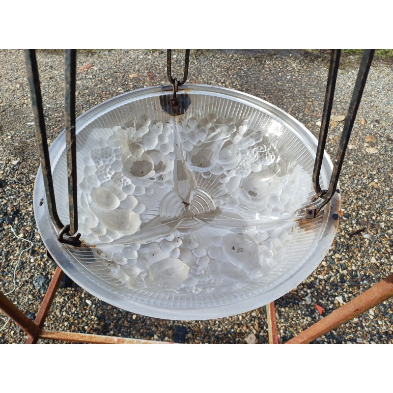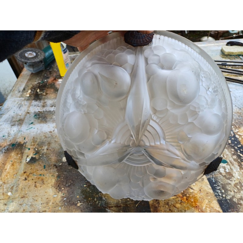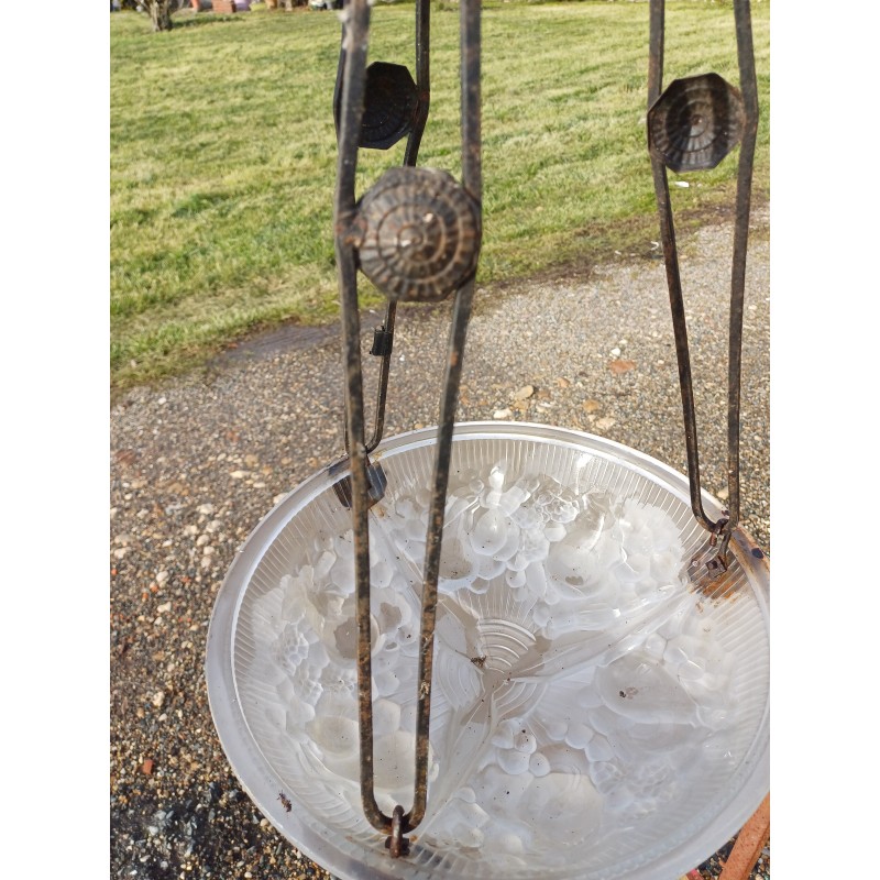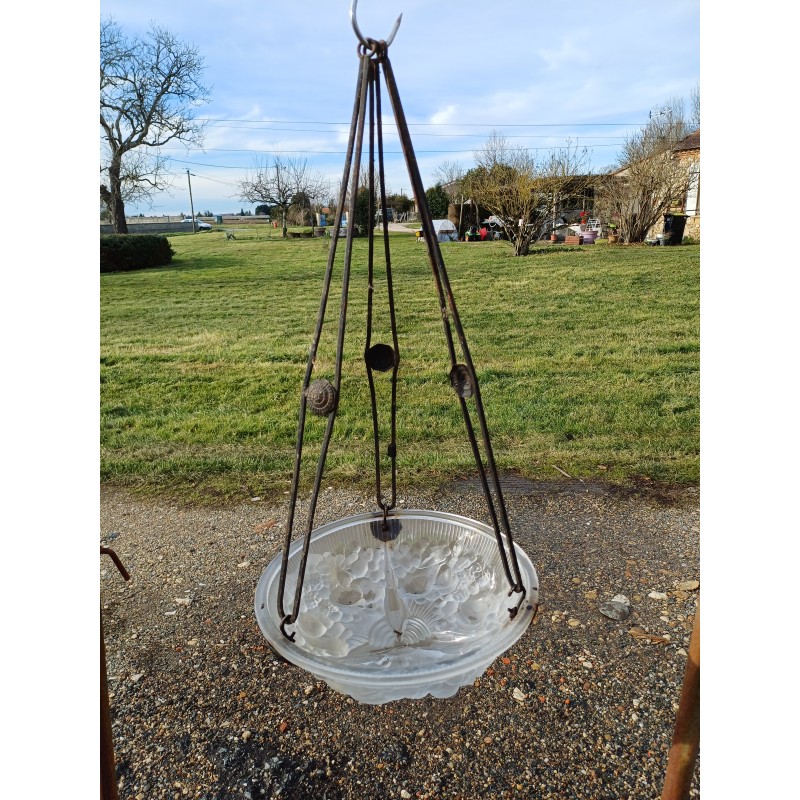 Suspension Mullers Fréres Lunéville , Haut vasque : 11 cm , long Tiges fer : 61 cm , Diam vasque : 35 cm , poids : 3,5 Kg , trés bon ètat signé