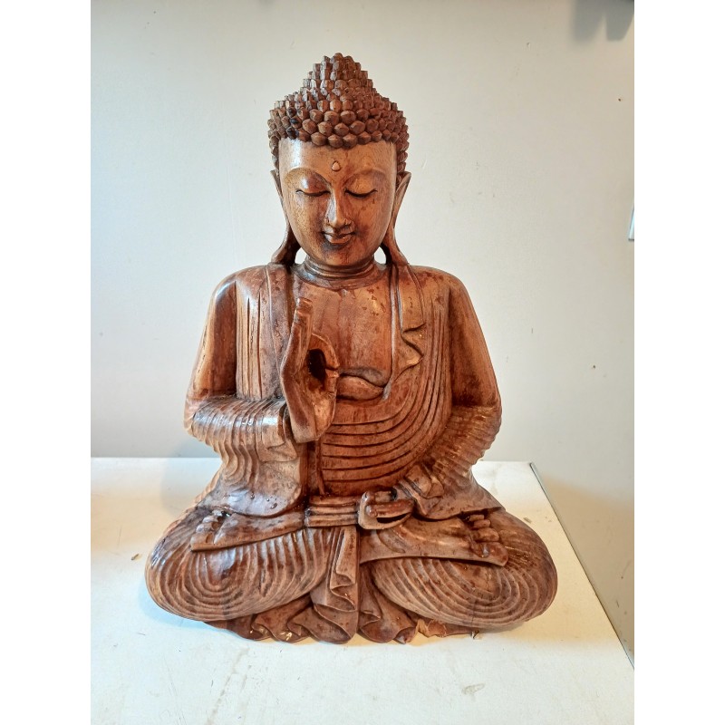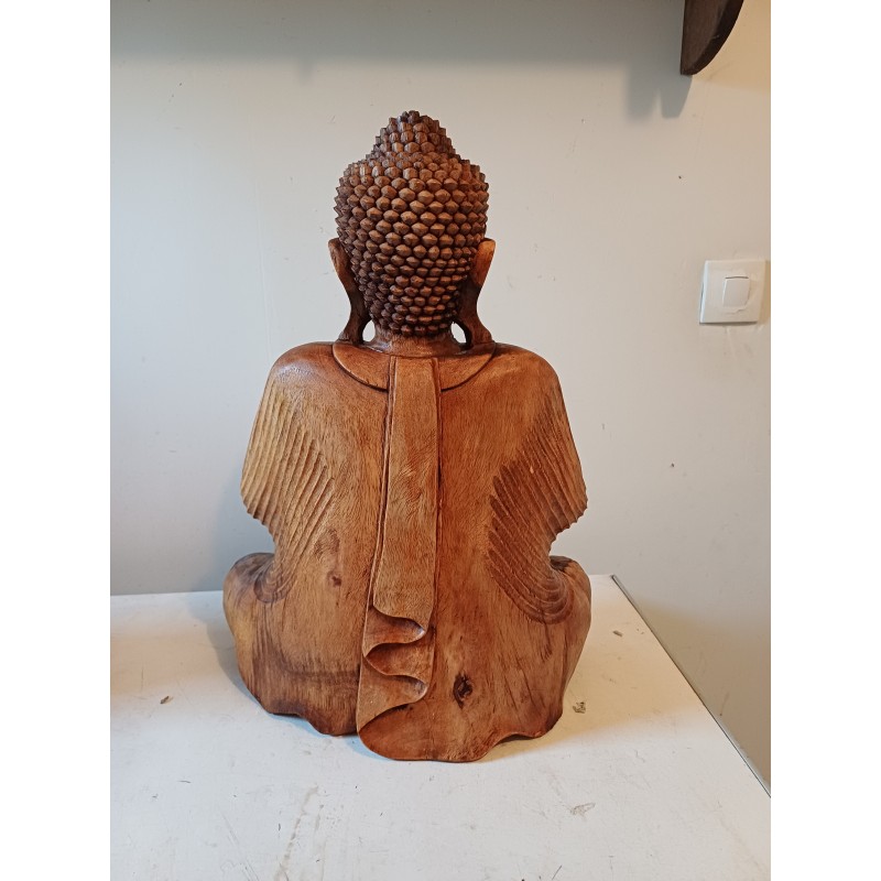 Bouddha Bois , Haut : 51 cm , long et larg : 39 cm sur 20 cm , poids : 7,5 Kg , très bon état