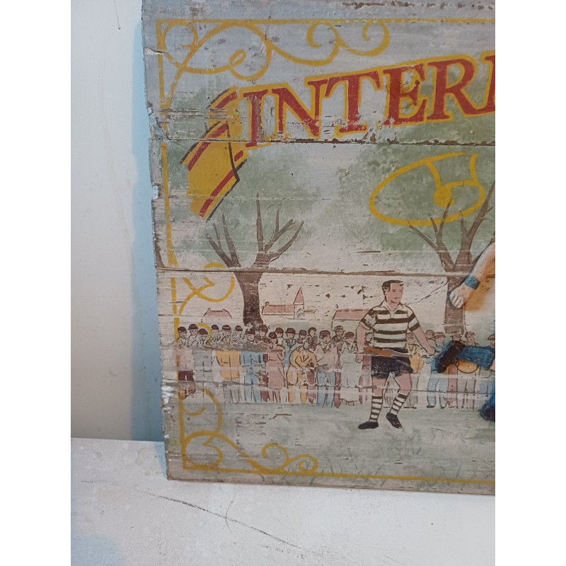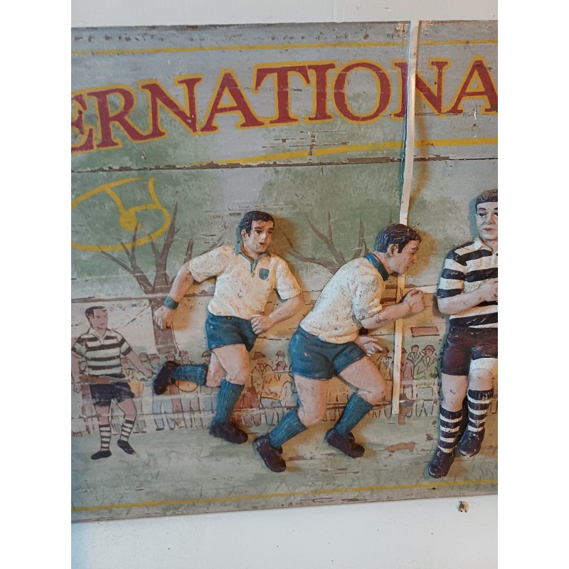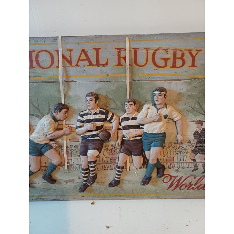 Panneau Bois International Rugby Board World Cup , Haut : 33 cm long et larg : 85 cm sur 3 cm , poids : 2 Kg , très bon état