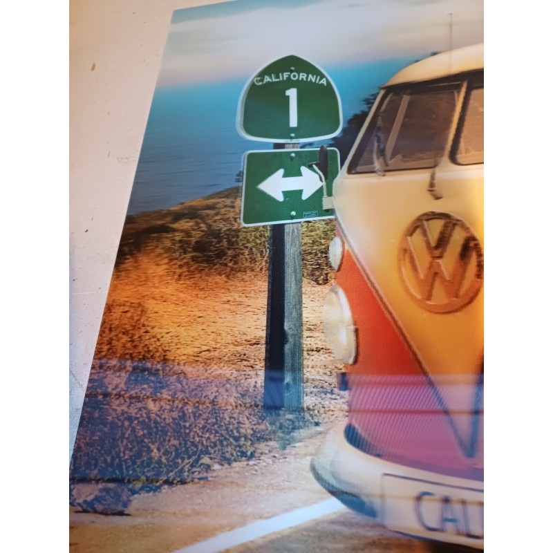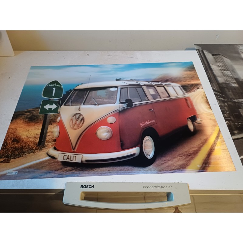3 Pubs Plastifiées Voiture US , Combi Wolsvagen et VW , Dimensions : 67 cm sur 47 cm , et : 50 cm sur 46 cm , effet 3 Dimensions et stroboscopique , très bon ètat