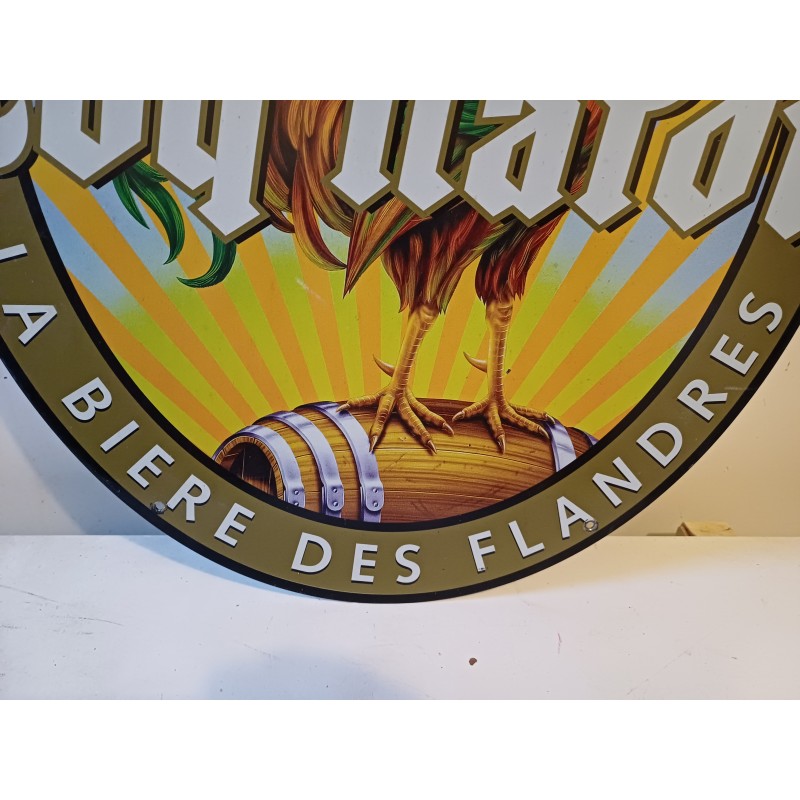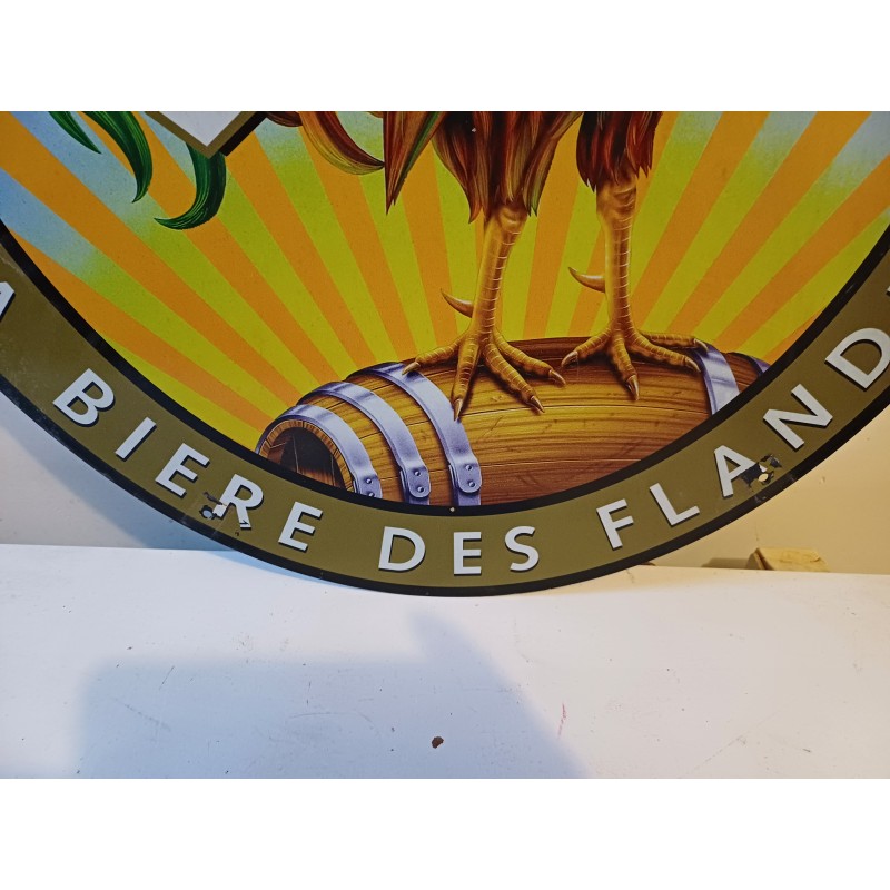 Plaque Tole Publicitaire " Coq Hardi " Biére des Flandres , Double Façe , Dimensions : 76 cm sur 62 cm , poids : 2,100 Kg , très bon état