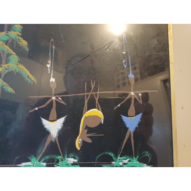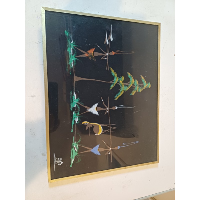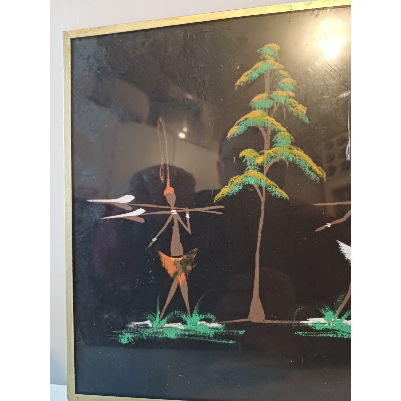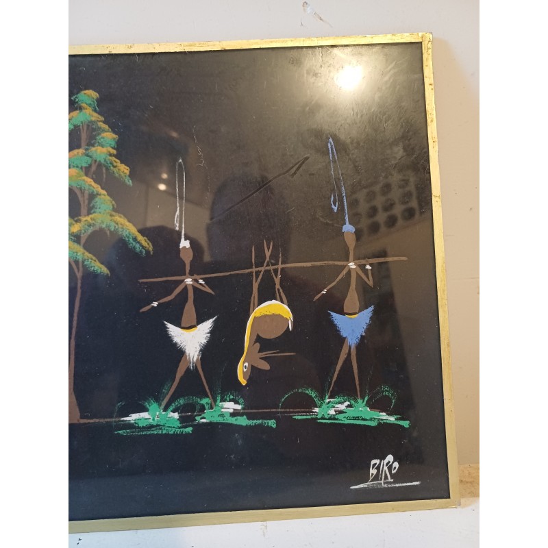 Gouache sur Toile Africaine signée : BIRO , sous verre , Haut : 25 cm , long et larg : 33 cm sur 1 cm , poids : 500 g , très bon état