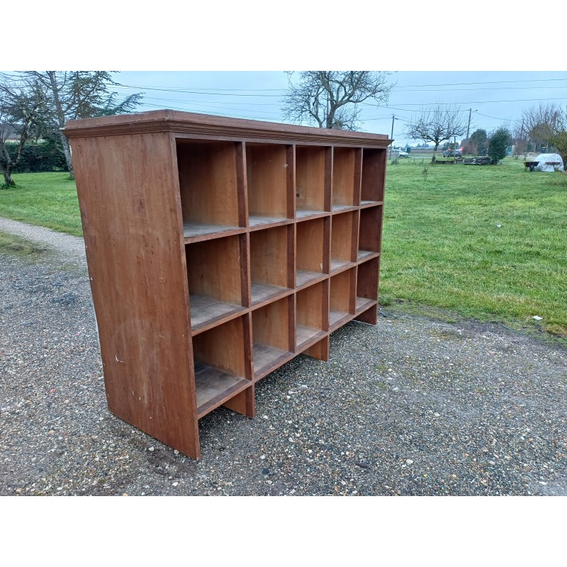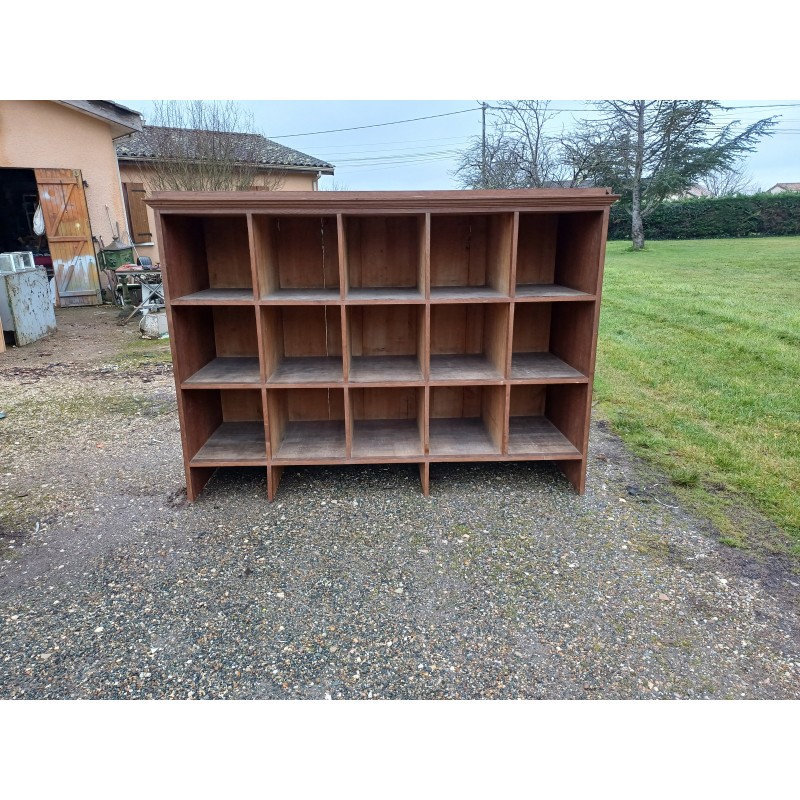 Meuble étagère de Magasin en Chéne des Années 30 , 15 Casiers , Haut : 151 cm , long et larg : 211 cm sur 74 cm , Casiers Profondeur : 68 cm , Haut : 38 cm , larg : 38 cm , très bon état