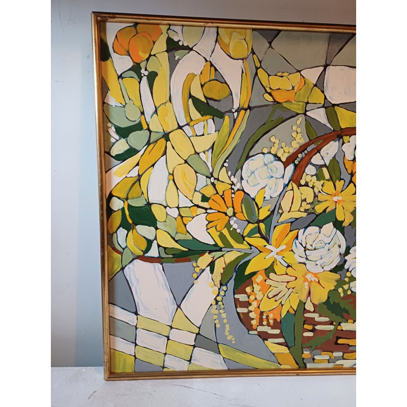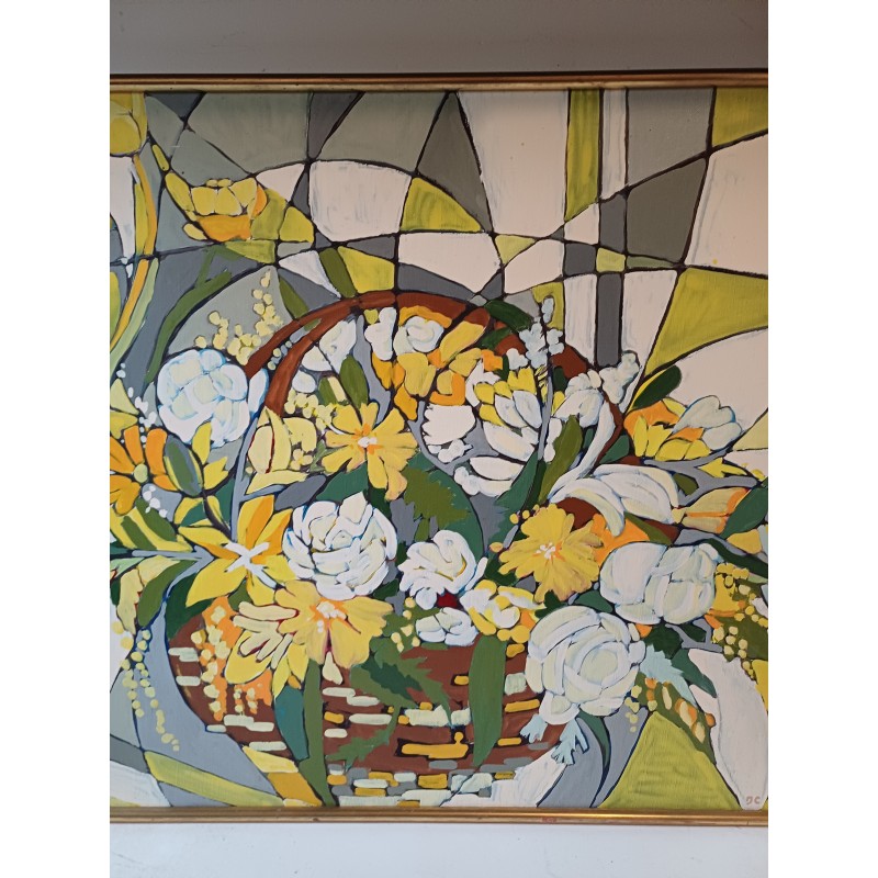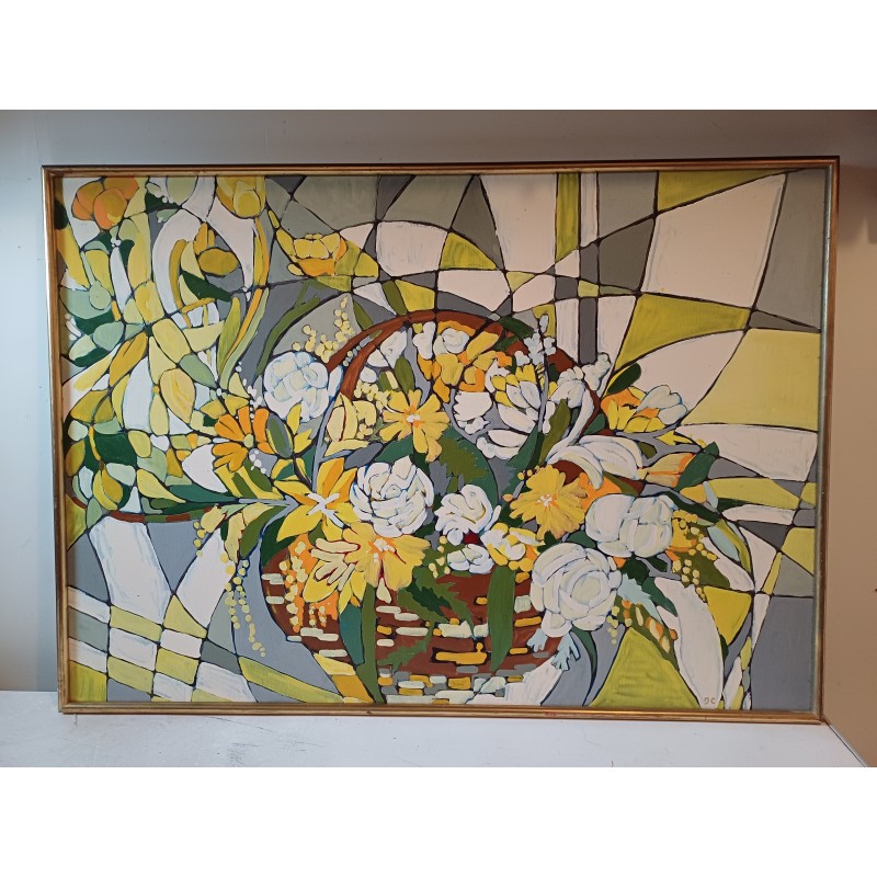 Huile sur Toile Jean Cheynel " Variation Florale " , Chamalières 63400 , Haut : 67 cm , long et larg : 94 cm sur 3 cm , poids : 2 Kg , très bon état