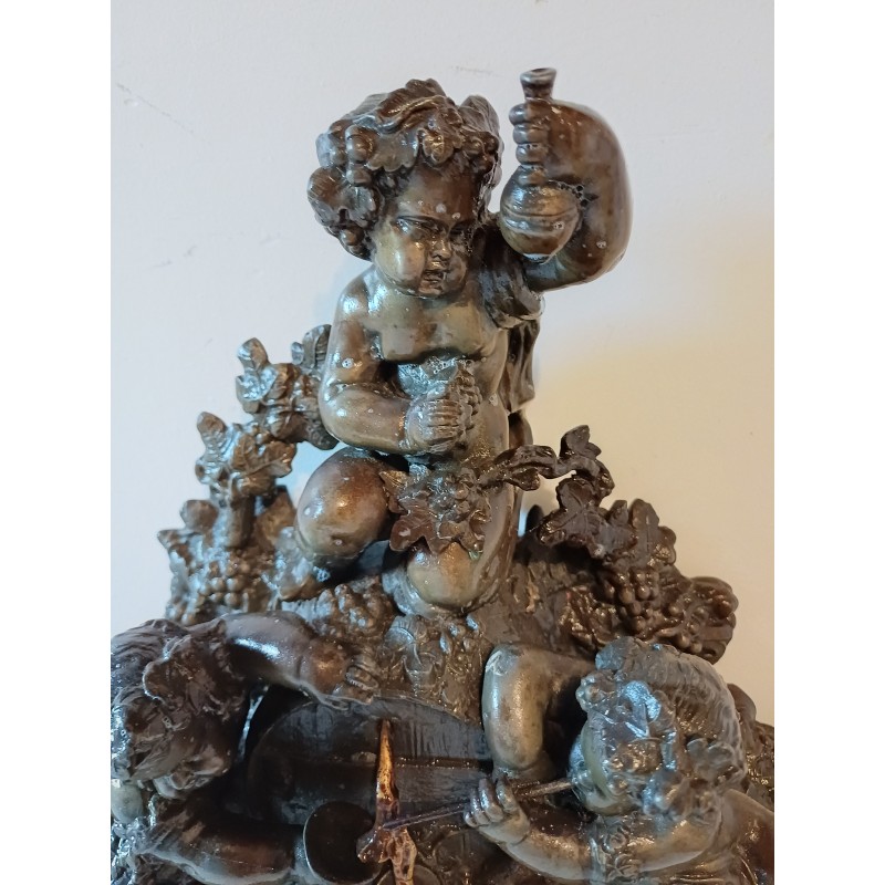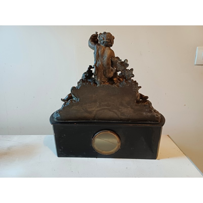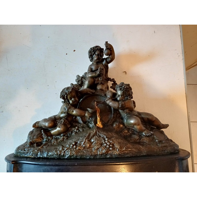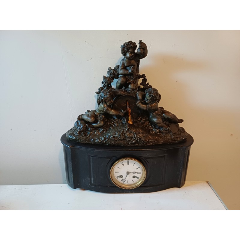 Pendule Marbre et régule Napolèon III " aux 3 Bacchus " Haut : 42 cm , long et larg : 40 cm sur 13 cm , poids : 6 Kg , très bon état