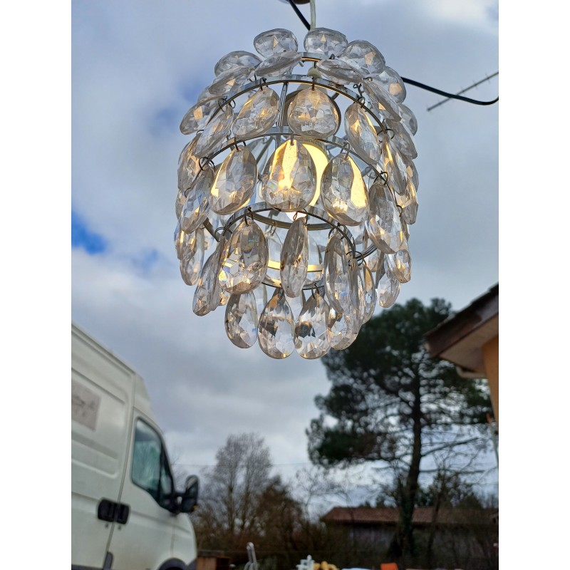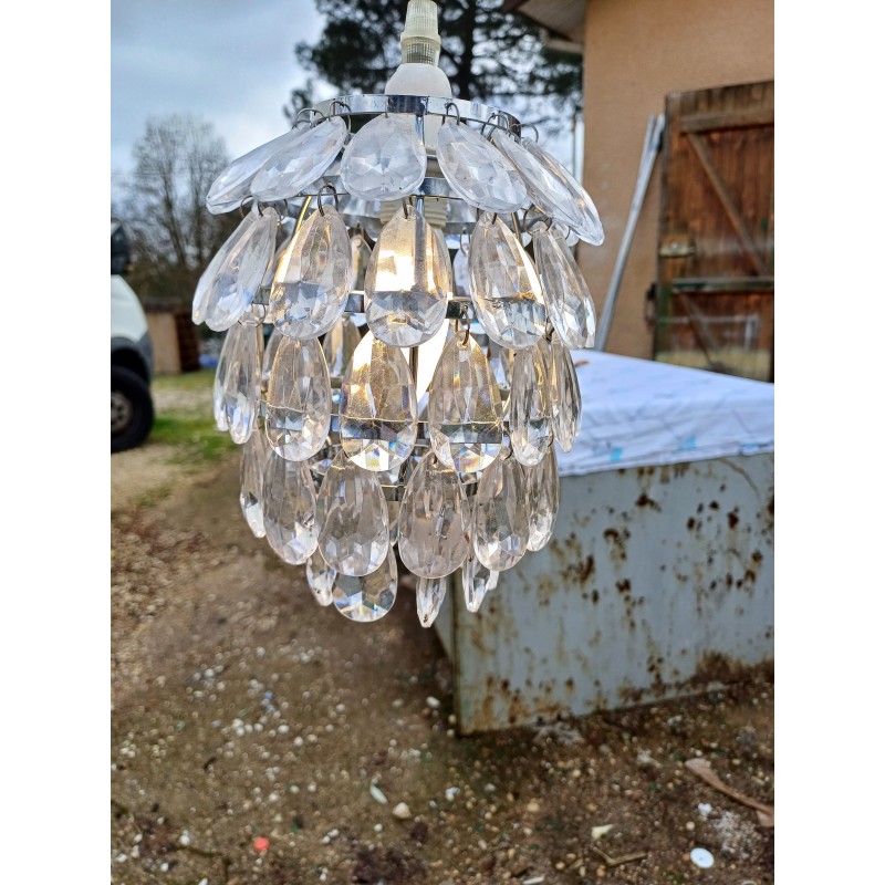 Lustre à Pampilles , Haut : 50 cm et 20 cm , hors Fil , Diam : 16 cm , très bon état