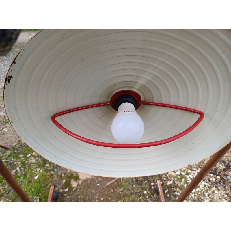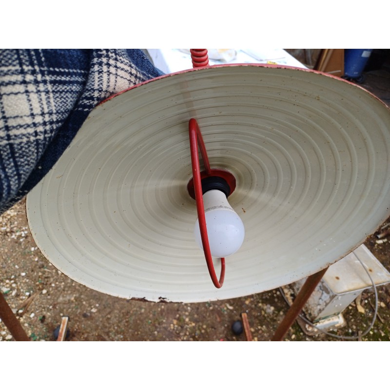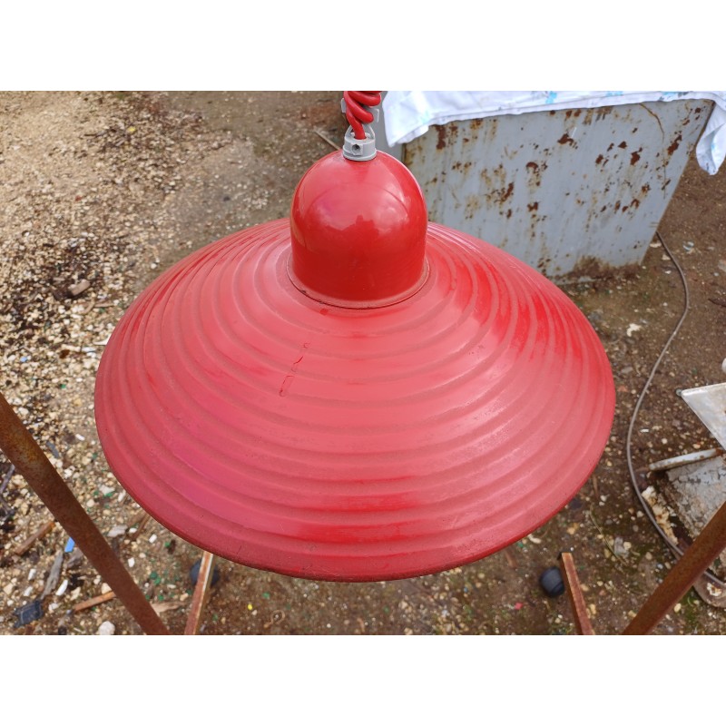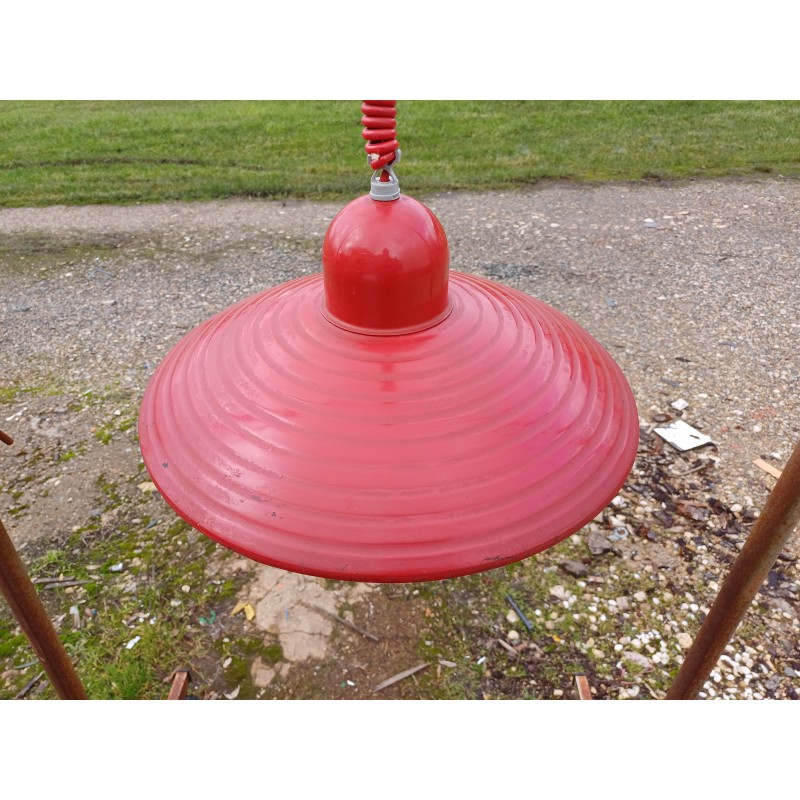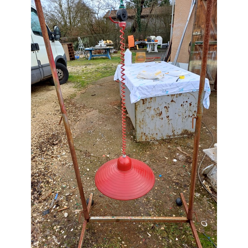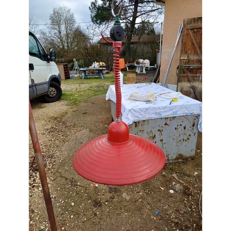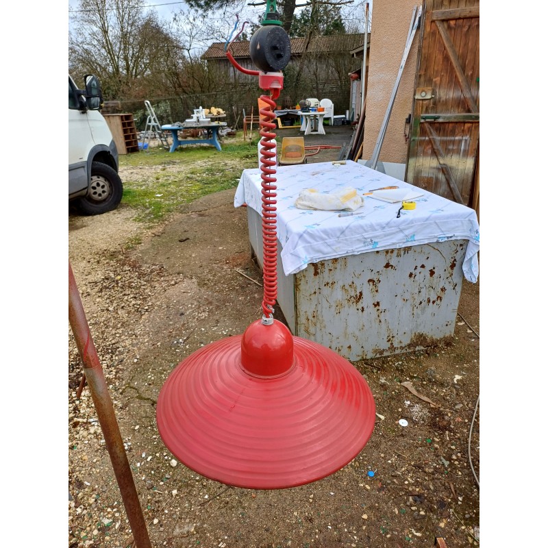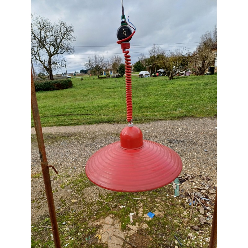 Suspension en Métal rouge , Monte et Baisse , Haut : 60 cm et 20 cm , Diam : 40 cm , très bon état
