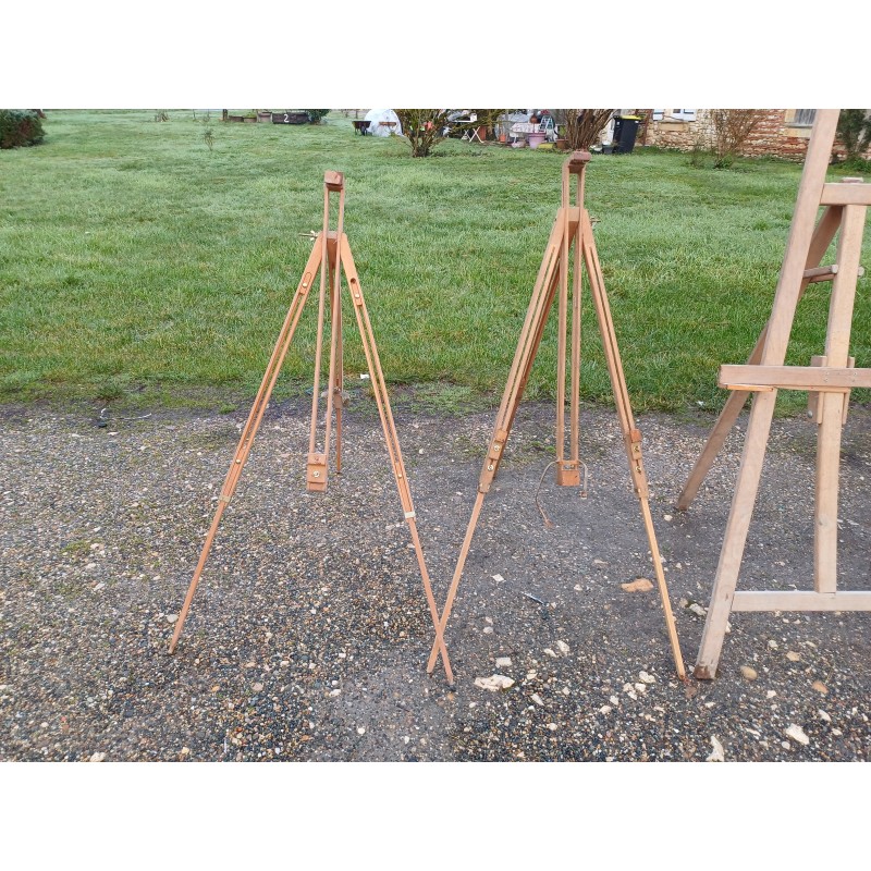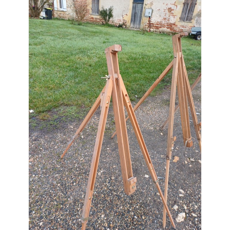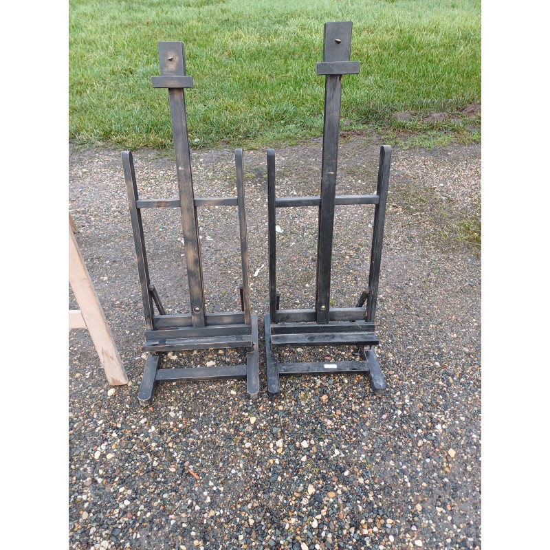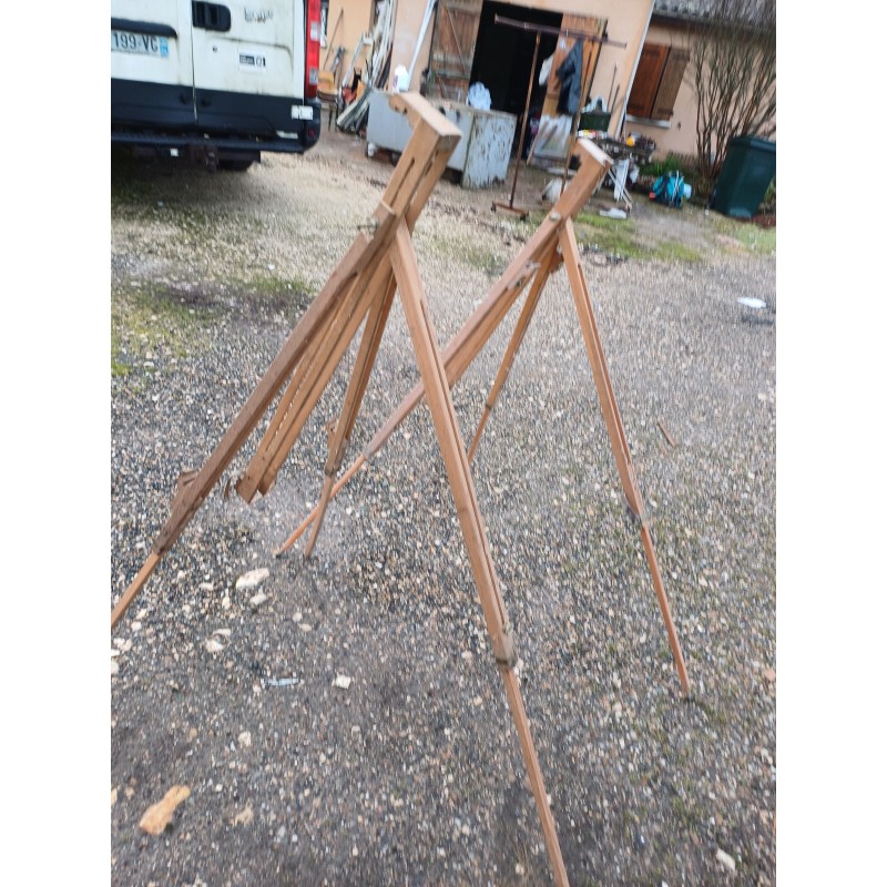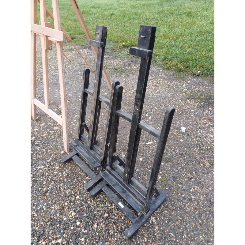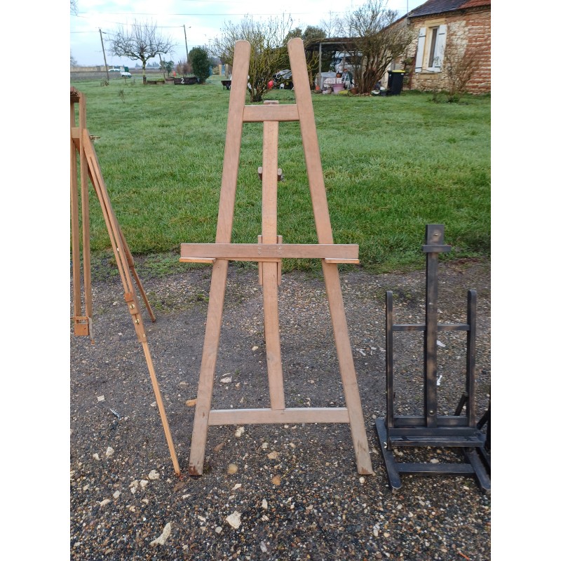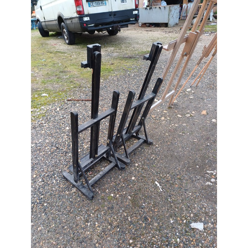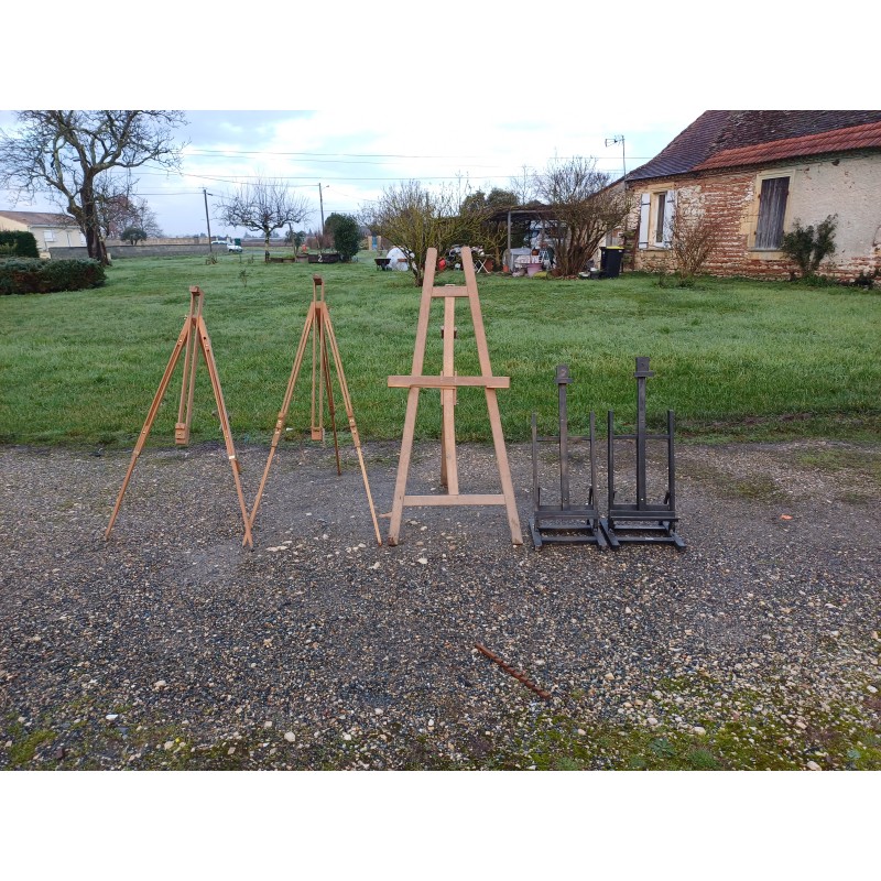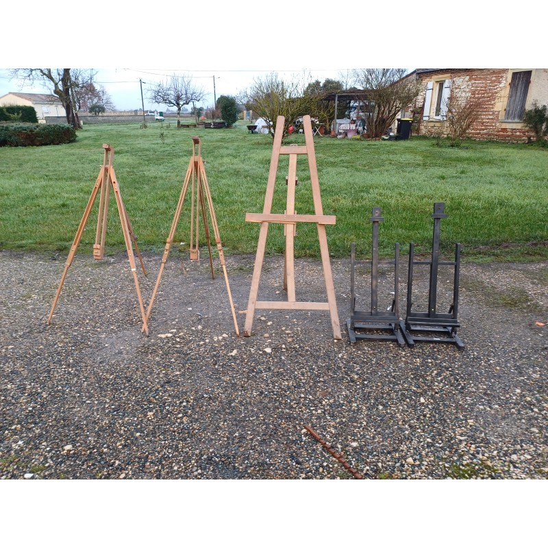 6 Chevalets Bois , pour Haut Tableau : 2 Petits noir : 70 cm , 3 Bois : 70 cm et grand au millieu : 157 cm , repliables , très bon état