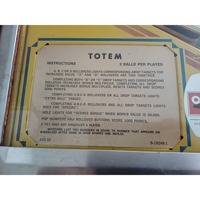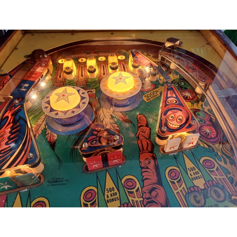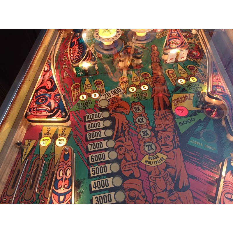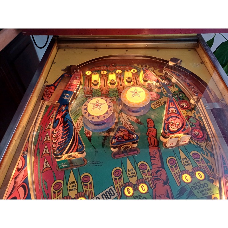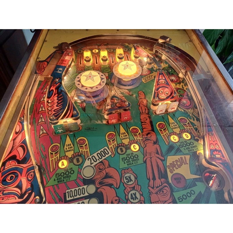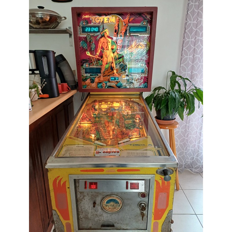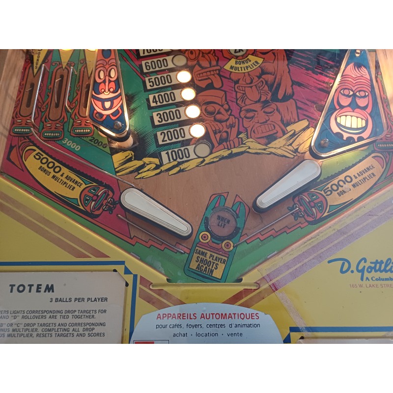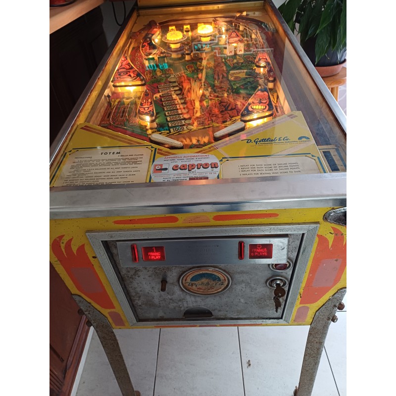 Flipper Gottlieb Totem 1979 , entièrement révisé par un professionnel , Carte CPU ET Carte Son Changées Connecteurs , Ampoules , caoutchoucs Boule Neuve , etc ..... 4 Joueurs , trés bon ètat