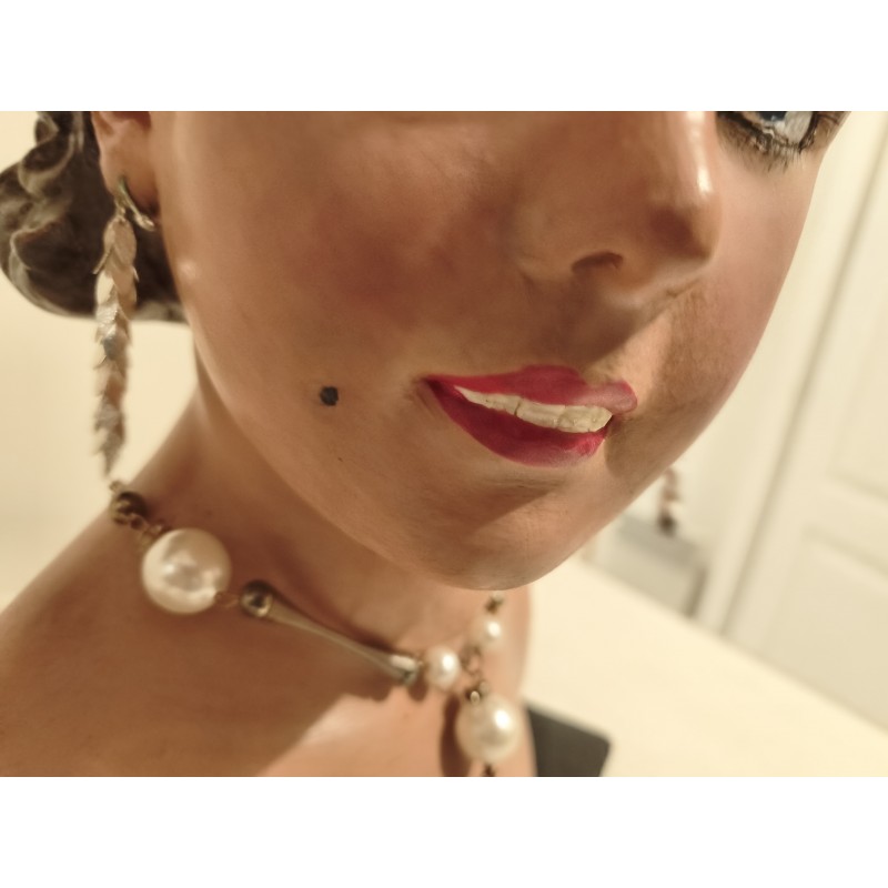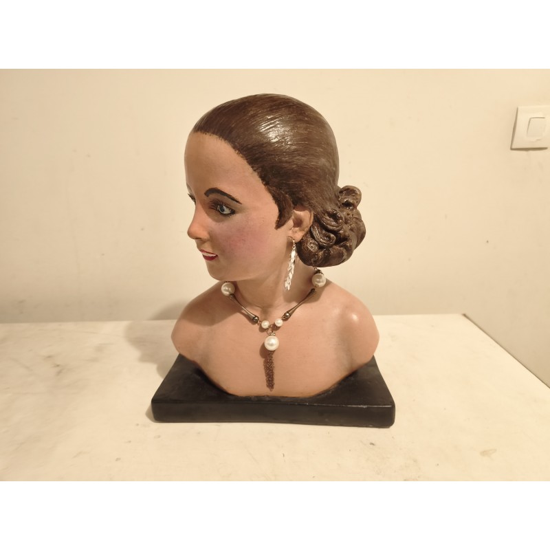 Platre Buste Femme signé Renet , Haut : 38 cm , long et larg : 30 cm sur 19 cm , poids : 6 Kg , très bon état ,