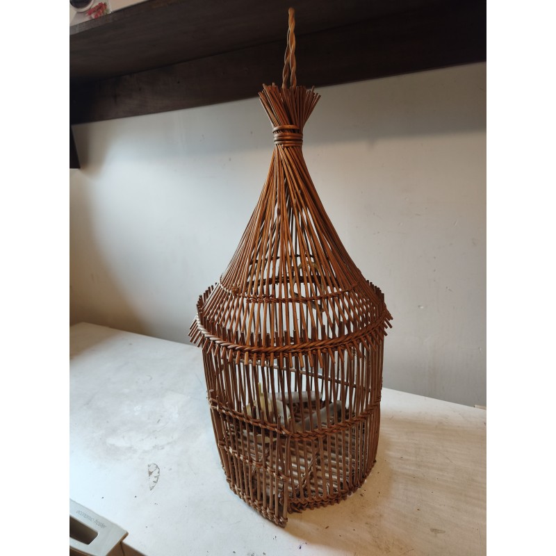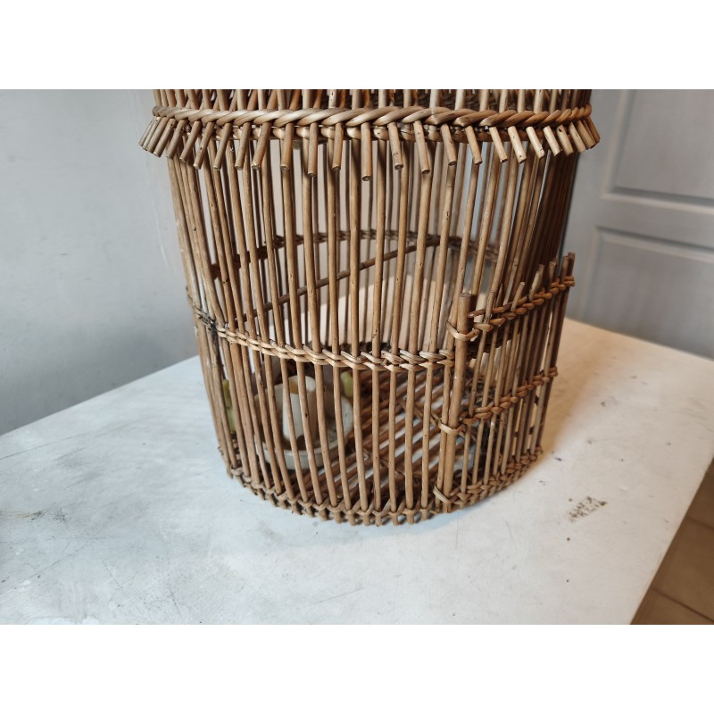 Case à Oiseaux Vintage en Osier , Haut : 80 cm , Diam : 31 cm , très bon état