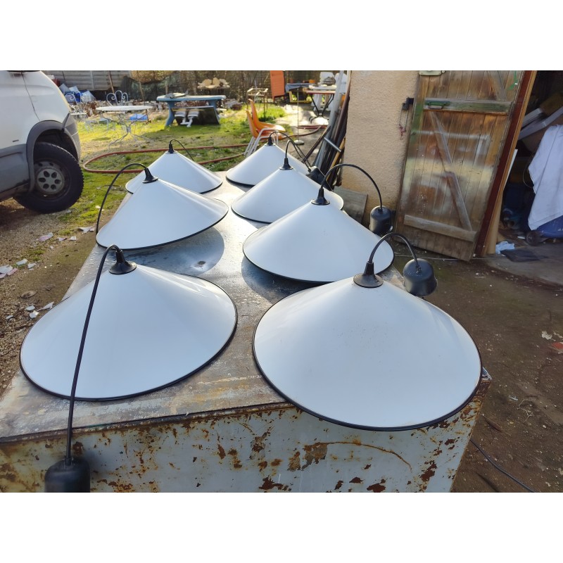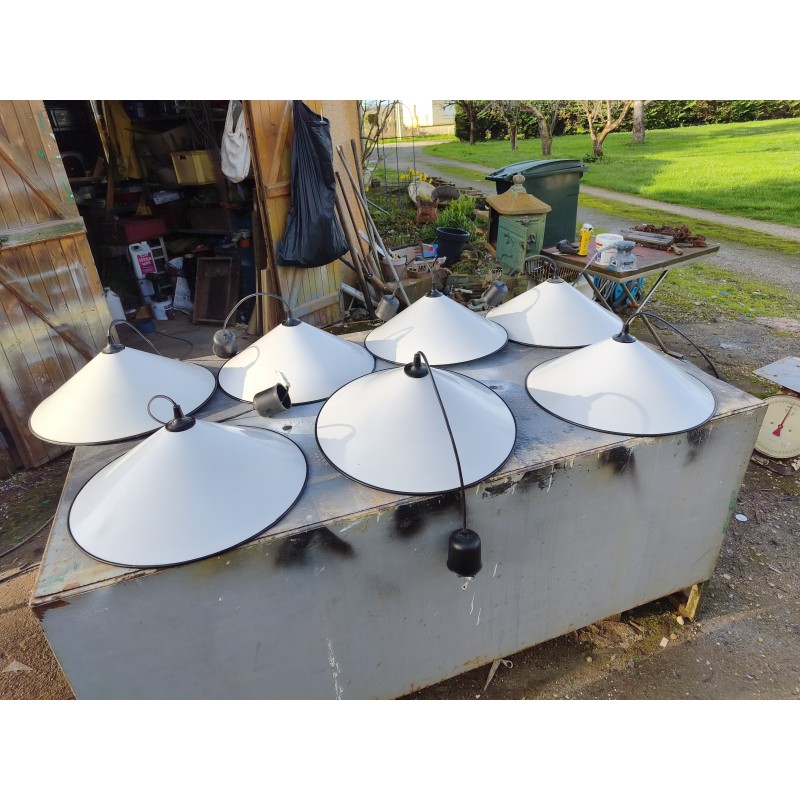Lot de 7 Suspensions Industrielle en Tole émaillée
