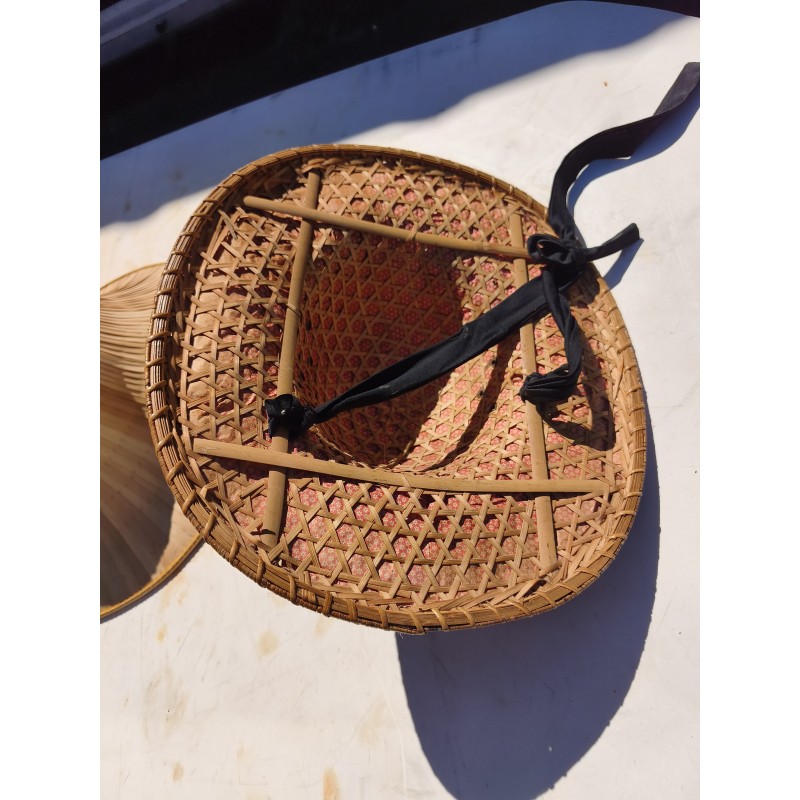 3 Chapeaux Asiatiques Vannerie , Rotin , osier et Paille de Riz , Diam : 44 cm , très bon état