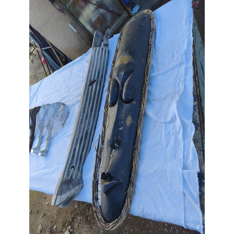 2 Masques Bois Afrique , Laiton , Haut : 103 cm , long et larg : 22 cm sur 7 cm , Bon état