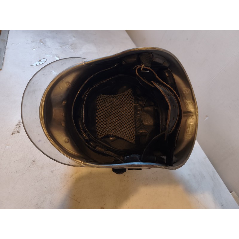 Casque de Pompier GALLET , Haut : 25 cm , long et larg : 26 cm sur 33 cm , poids : 1,2 Kg , en l'état