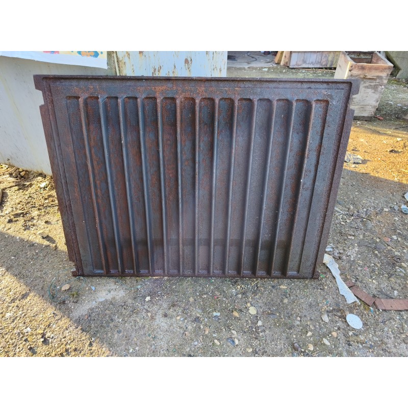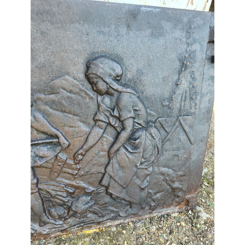 Plaque De Cheminée en Fonte , Haut : 53 cm , long et larg : 71 cm sur 4 cm , poids : 50 Kg , très bon état