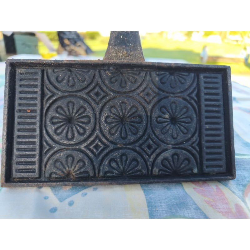 Pince à Moules a Gaufres Fonte 19 éme , long et larg : 74 cm sur 19 cm , Intérieur Moule : 19 cm sur 10 cm , poids : 3 Kg , très bon état