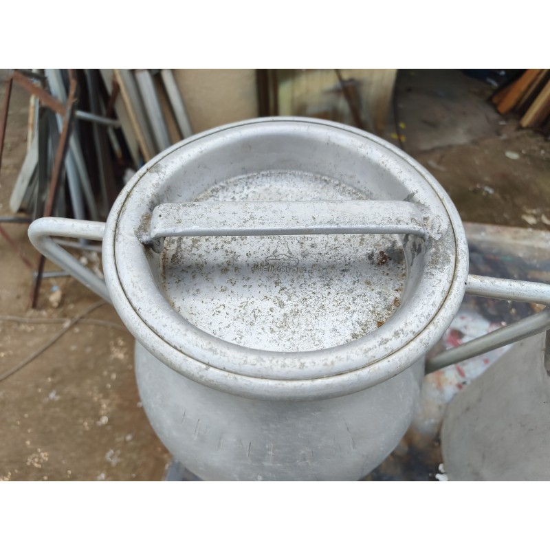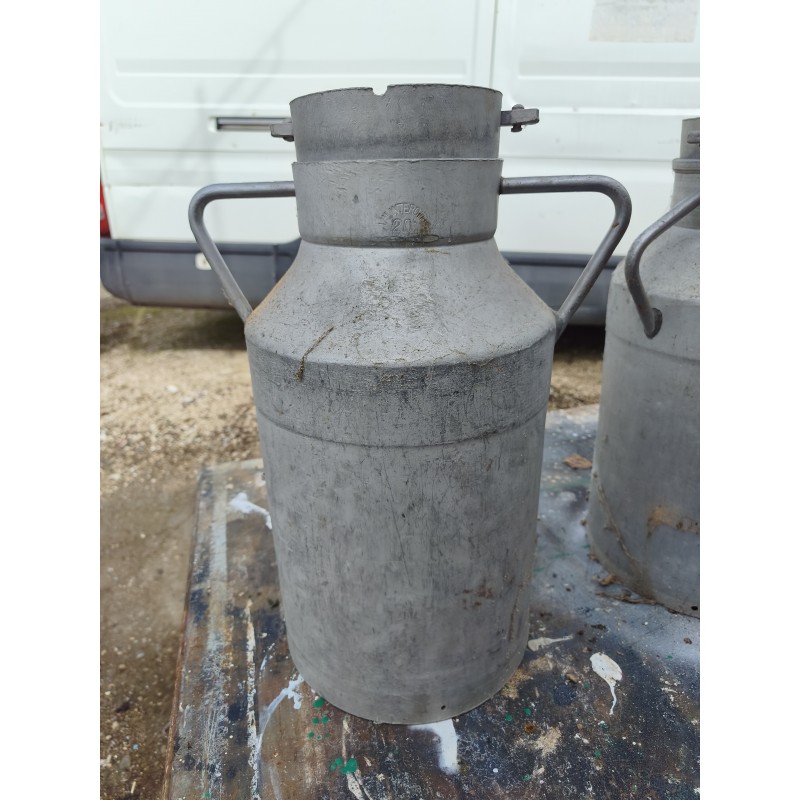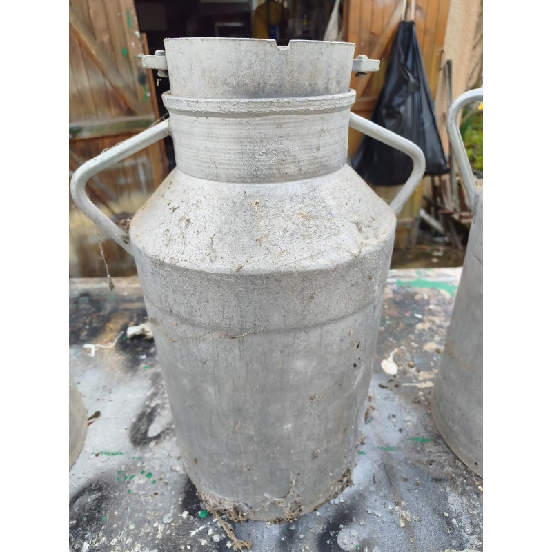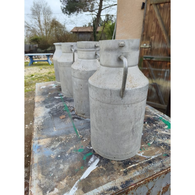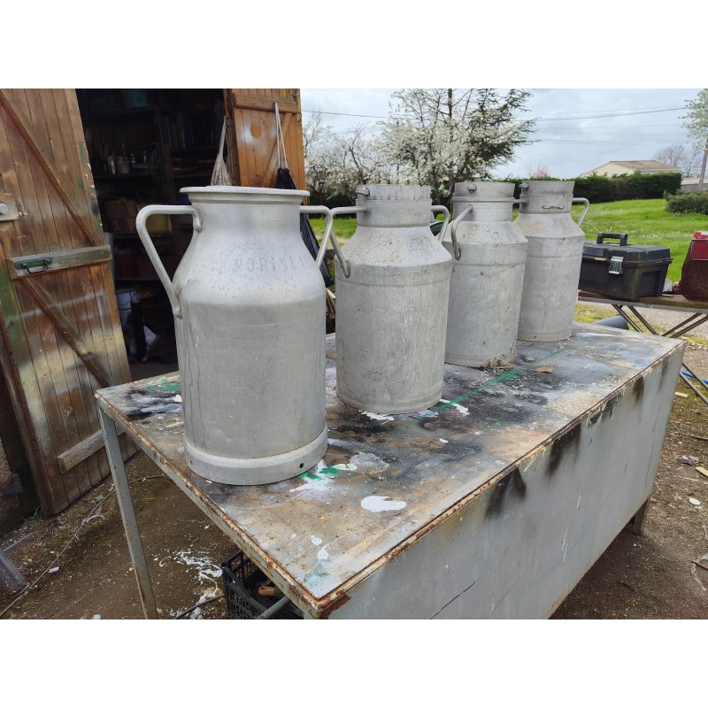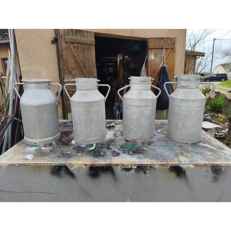 4 Bidons de Lait en Aluminium : 20 L, Haut : 50 cm , Diam : 28 cm , poids : 3 Kg pièce , très bon état ,