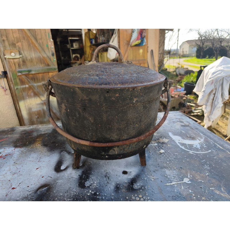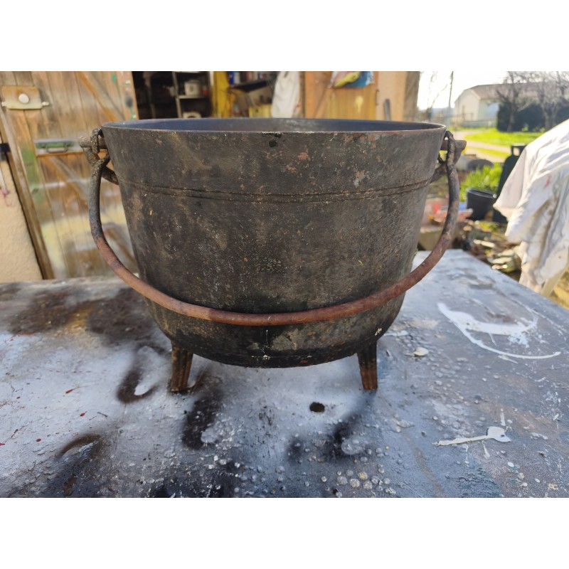 Marmite en Fonte Ancienne de 28 L , Haut : 45 cm , Diam : 41 cm , poids : 15 Kg , très bon état