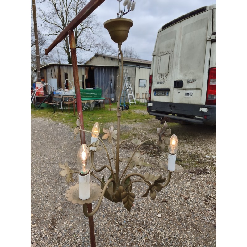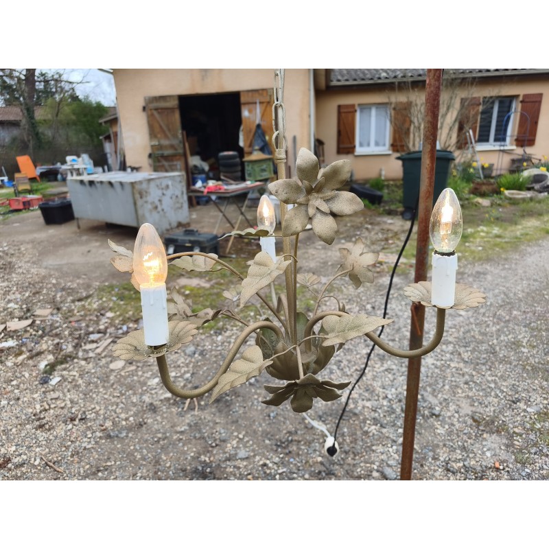 Lustre Vintage en Métal Doré décor Floral , Haut : 60 cm , Diam : 50 cm , poids : 1 Kg , très bon état