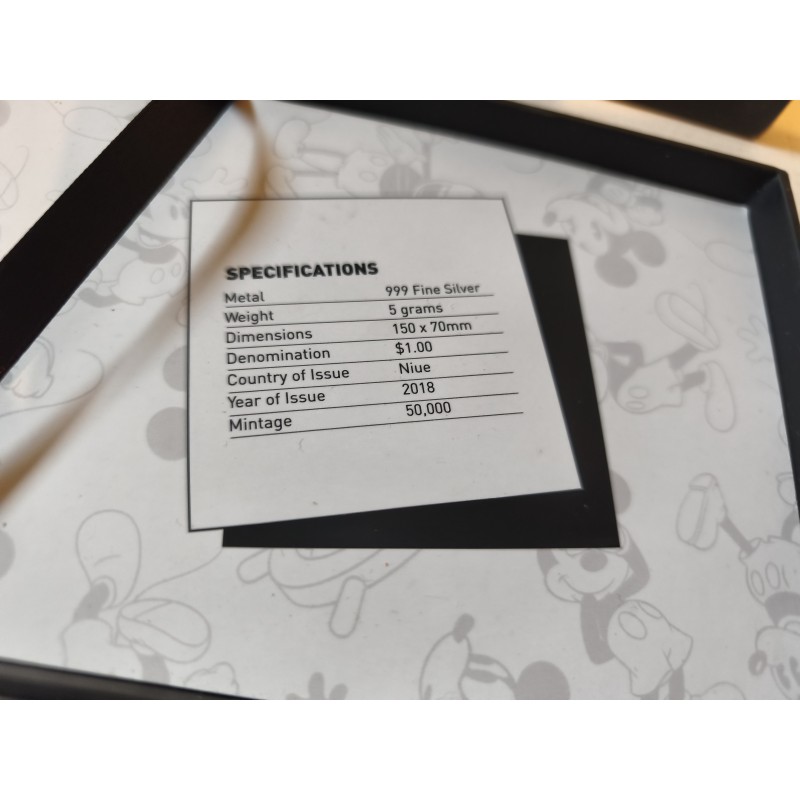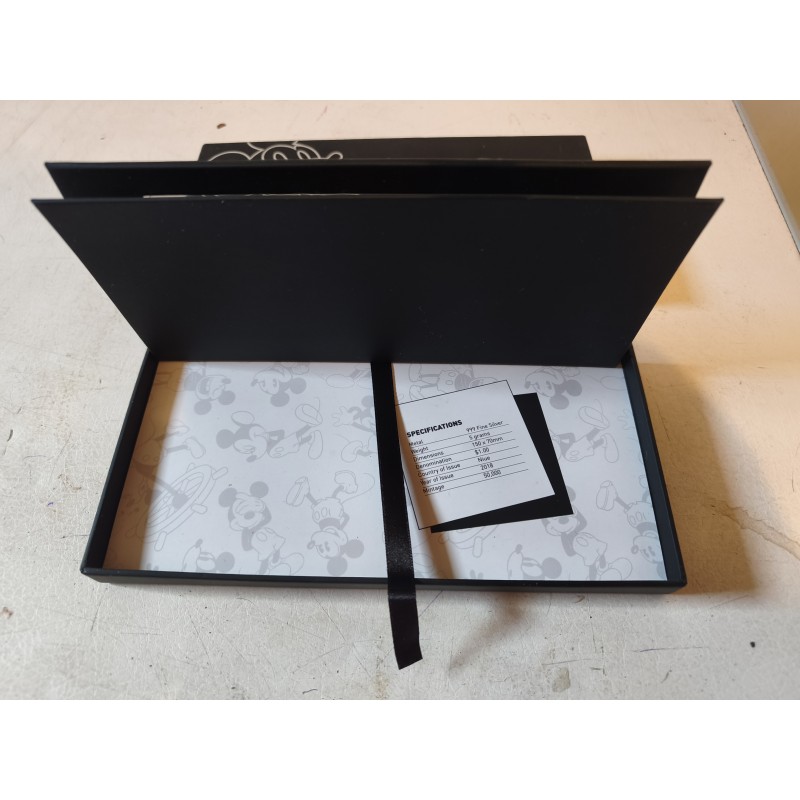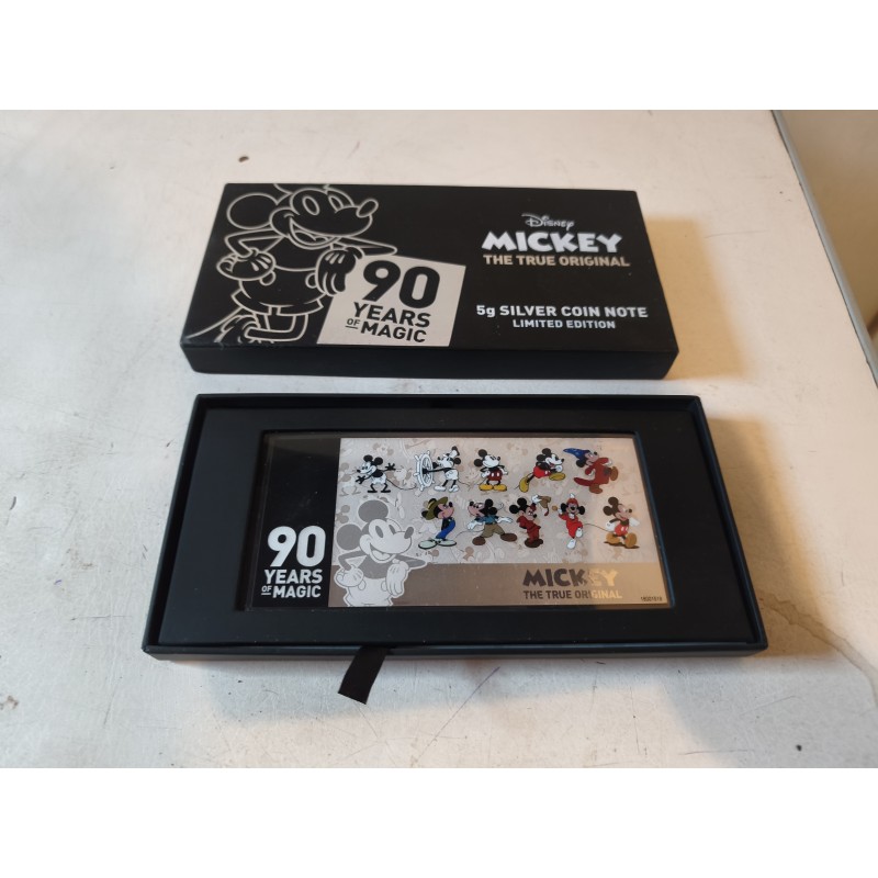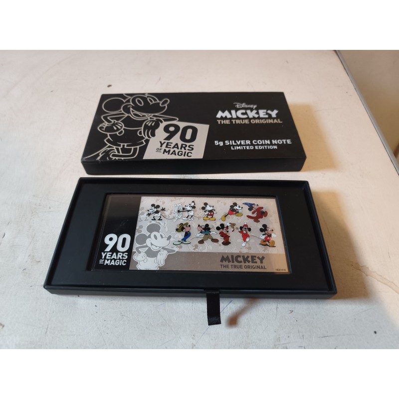 Disney Mickey The True Original 90 Years Of Magics 5 g Silver Coin Note Limited édition , Boite dimensions : 22,5 cm sur 11,5 Cm , très bon état