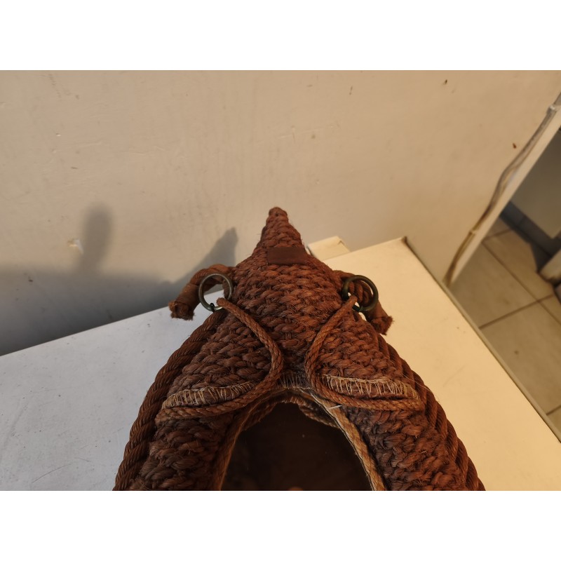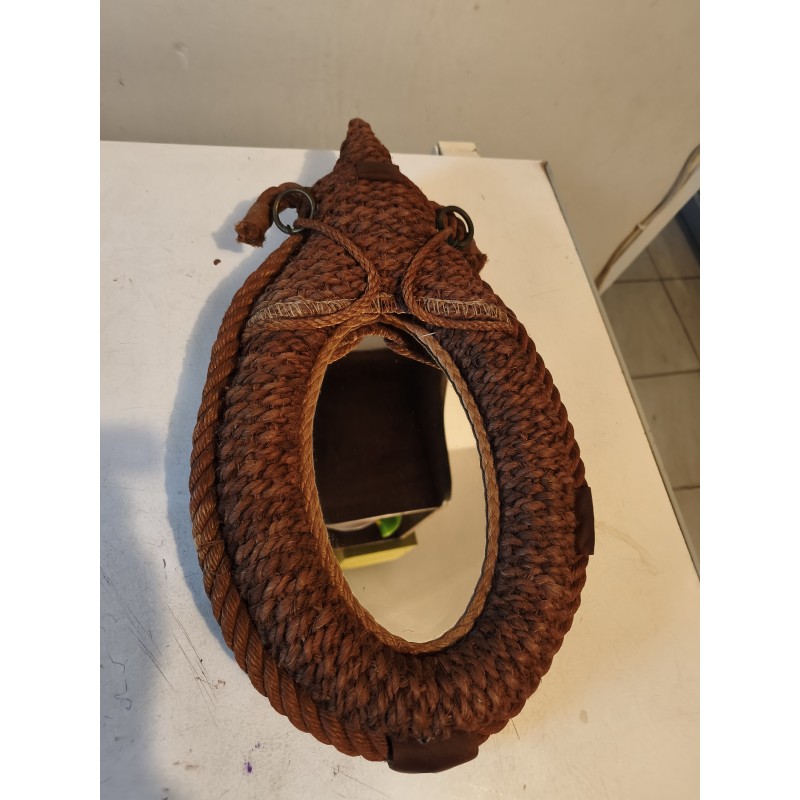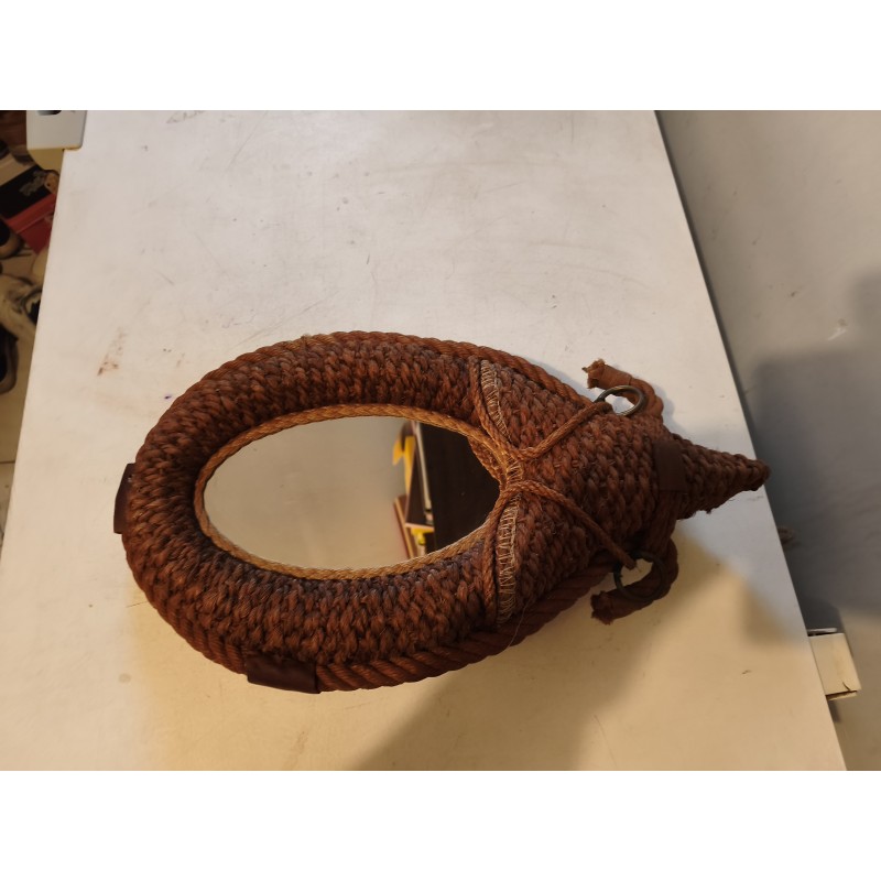 Miroir Audoux Minet , Cordes , Cuir , Laiton , Haut : 47 cm , long et larg : 25 cm sur 9 cm , poids : 1,100 Kg , très bon état