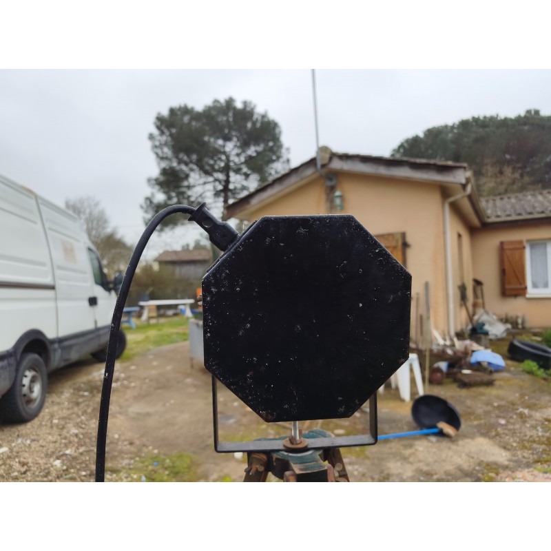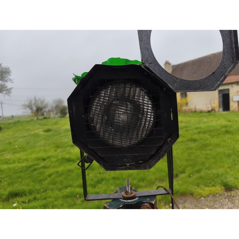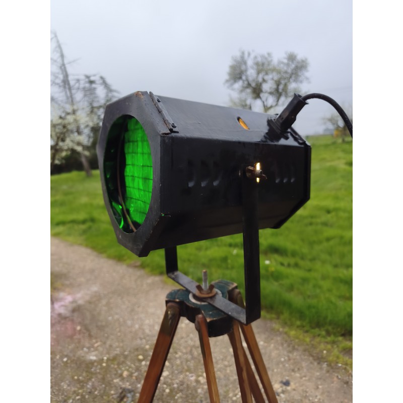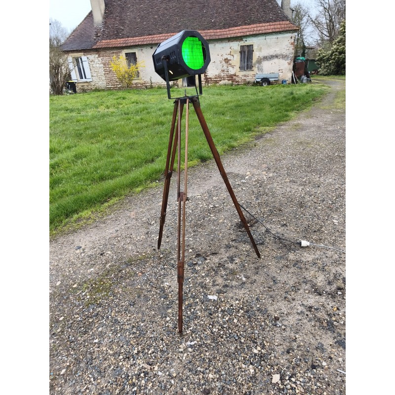 Lampe sur Pieds Spot de Cinéma , Haut : 155 cm , pied réglable en larg et en Hauteur , Spot en Métal , Dimensions : 27 cm sur 19 cm , Filtre Plastique vert Changeable , très bon état