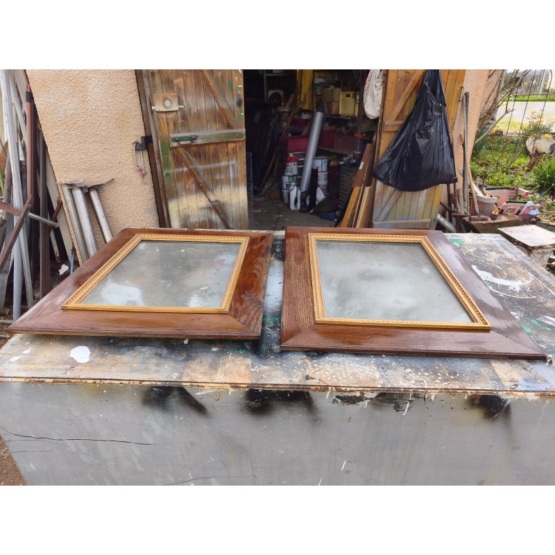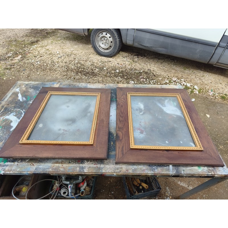 Paire de Cadres Bois Chéne et Stuk doré 1920 , Dimensions : 72 cm sur 63 cm , épaisseur : 3 cm , Vitre : 50 cm sur 40 cm , très bon état , envoi avec vitre ou pas