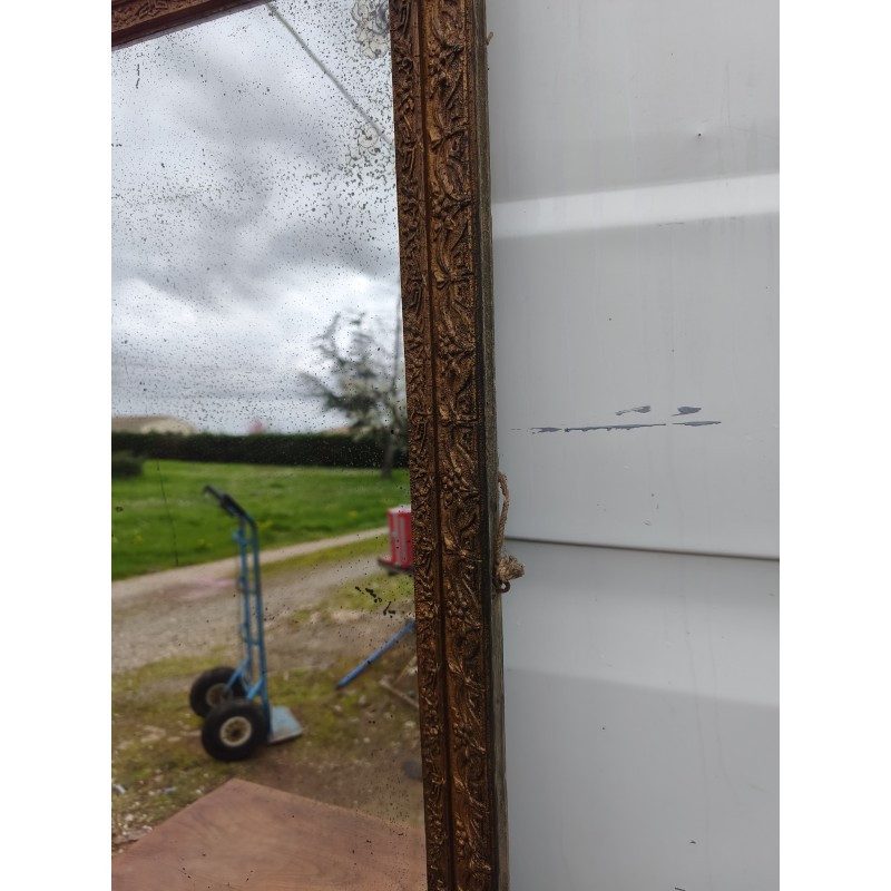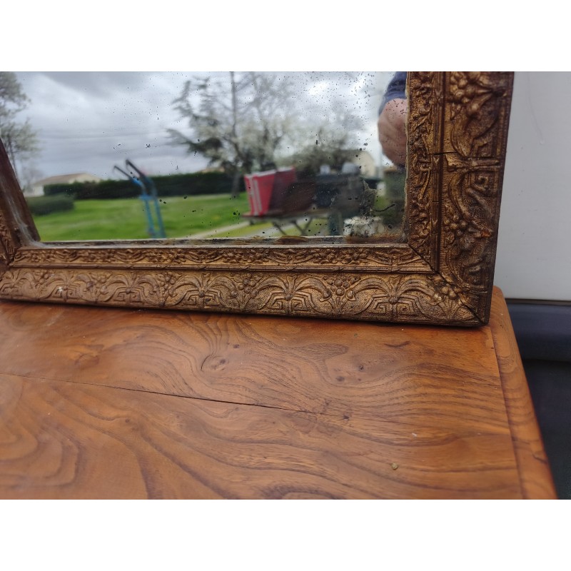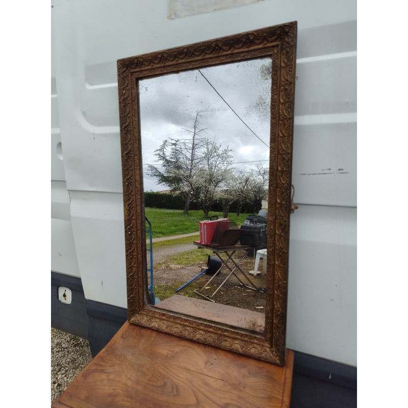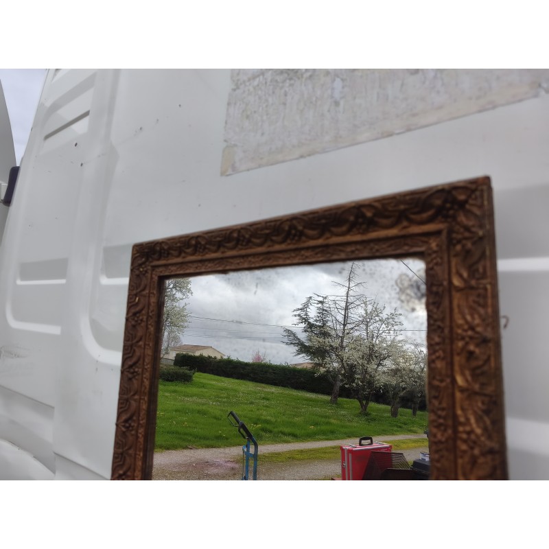 Miroir de Cheminée 19 éme Bois et Stuk doré , Haut : 84 cm , long et larg : 51 cm sur 3 cm , poids : 8 Kg , bon état