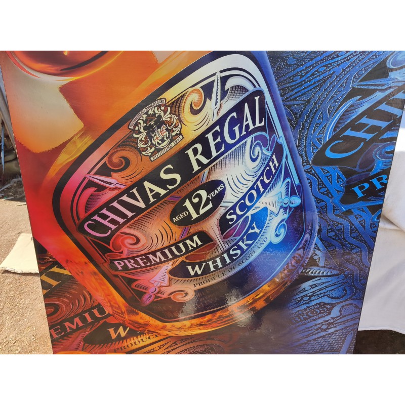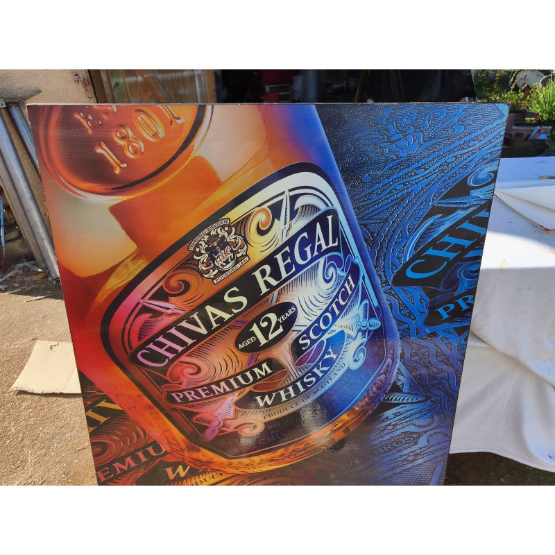 Panneau Bois Publicité Chivas Régal , Dimensions : 100 cm sur 70 cm , poids : 6,5 Kg , très bon état