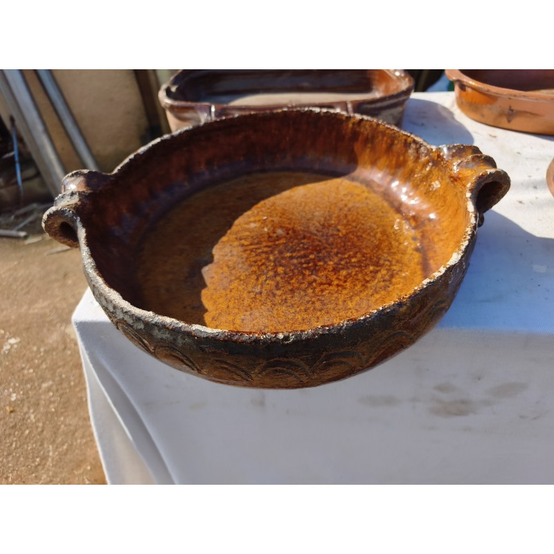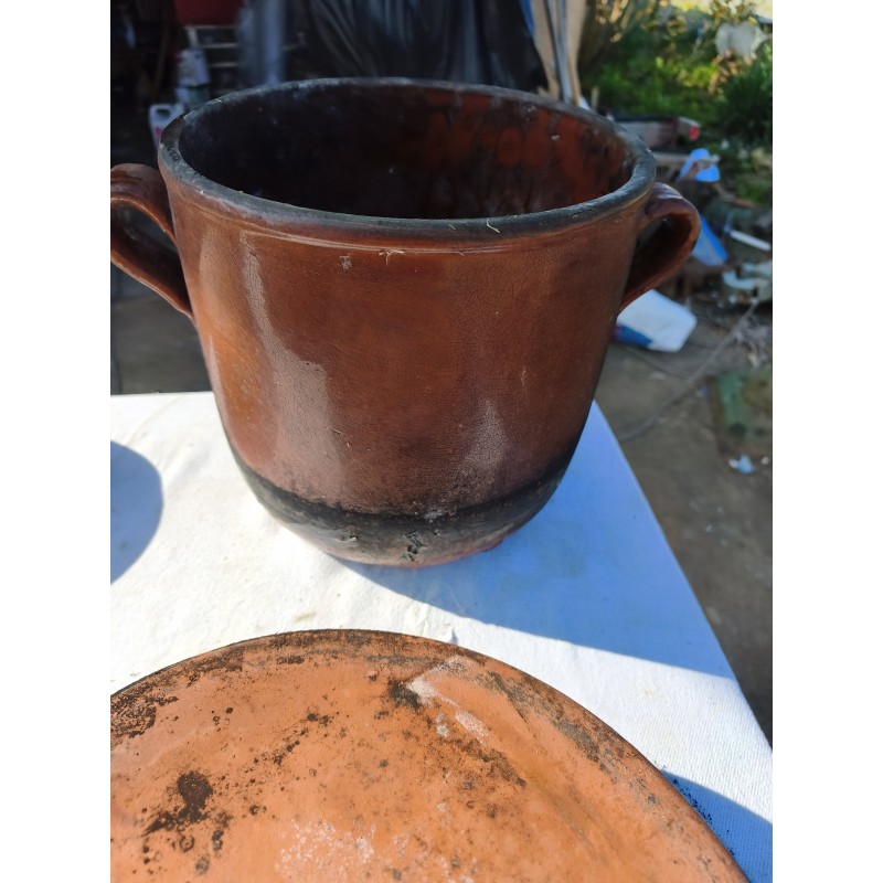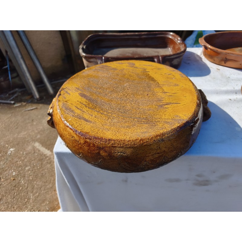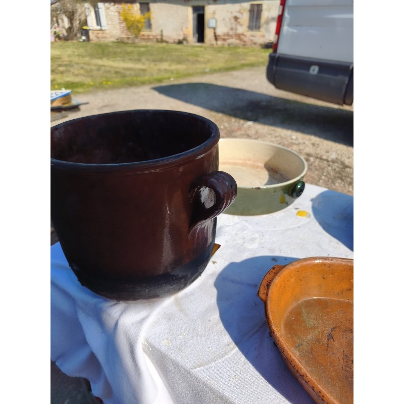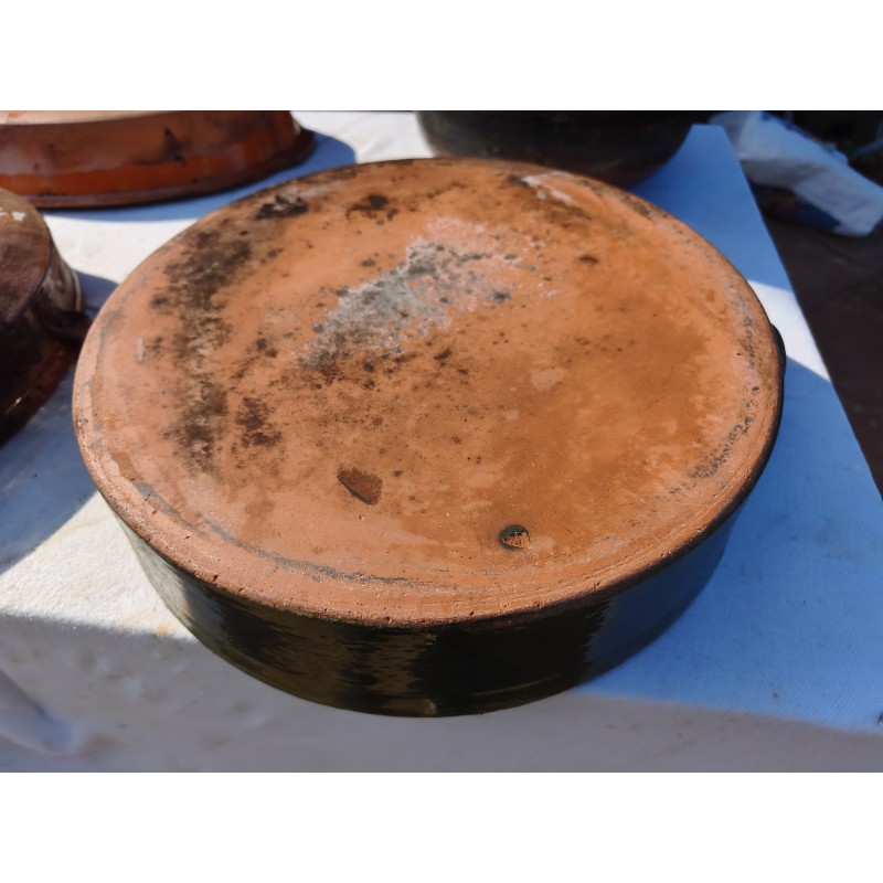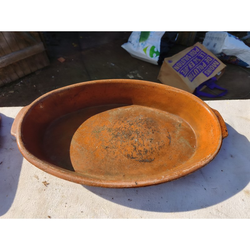 Lot de Poterie Ancienne en Grés , Leche Frites Haut : 7 cm , long et larg : 45 cm sur 28 cm , Plat rond 44 cm sur , 36 cm sur 33 cm et émaillé vert 33 cm sur 36 cm , Haut : 10 cm , Plat Ovale Haut : 7 cm , long et larg : 43 cm sur 27 cm , Pot Rond Haut : 25 cm , long et larg : 33 cm sur 25 cm , poids Total : 20 Kg , très bon état , dans leurs jus d'origine