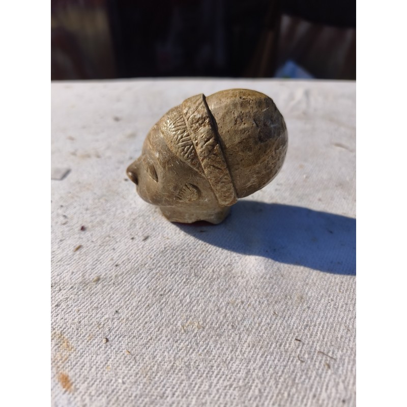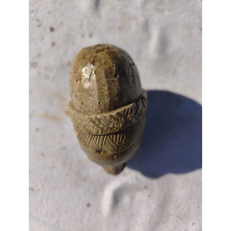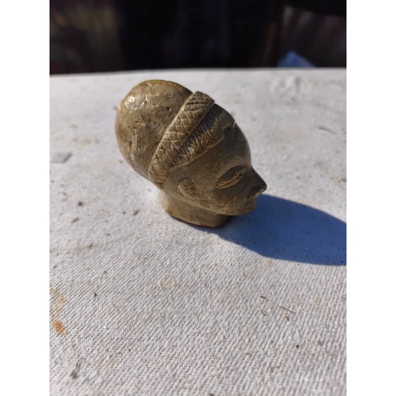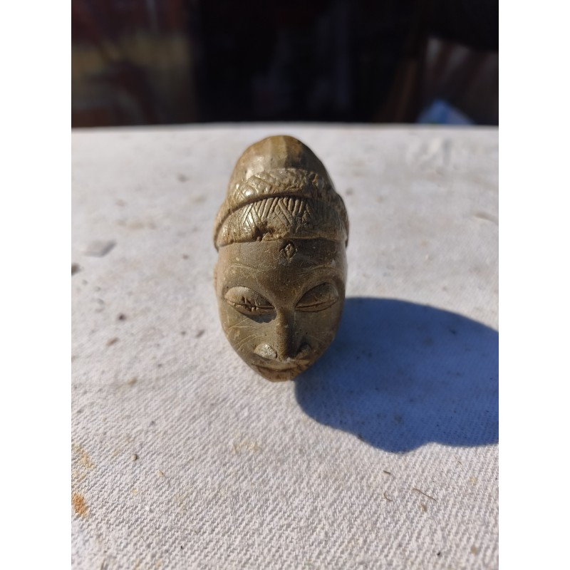 Téte en Pierre de Madagascar Ancienne , Haut : 7,5 cm , long et larg : 9 cm sur 5 cm , poids : 900 g , très bon état