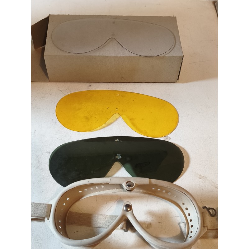 Lunette Vintage " Junior " Moto , Aviation , Plastic , 3 Couleurs interchangeables , Jaune , Verte et Transparente , Monture Plastic tendre avec clips , Neuf jamais servi , dans son emballage d'Origine , très bon état