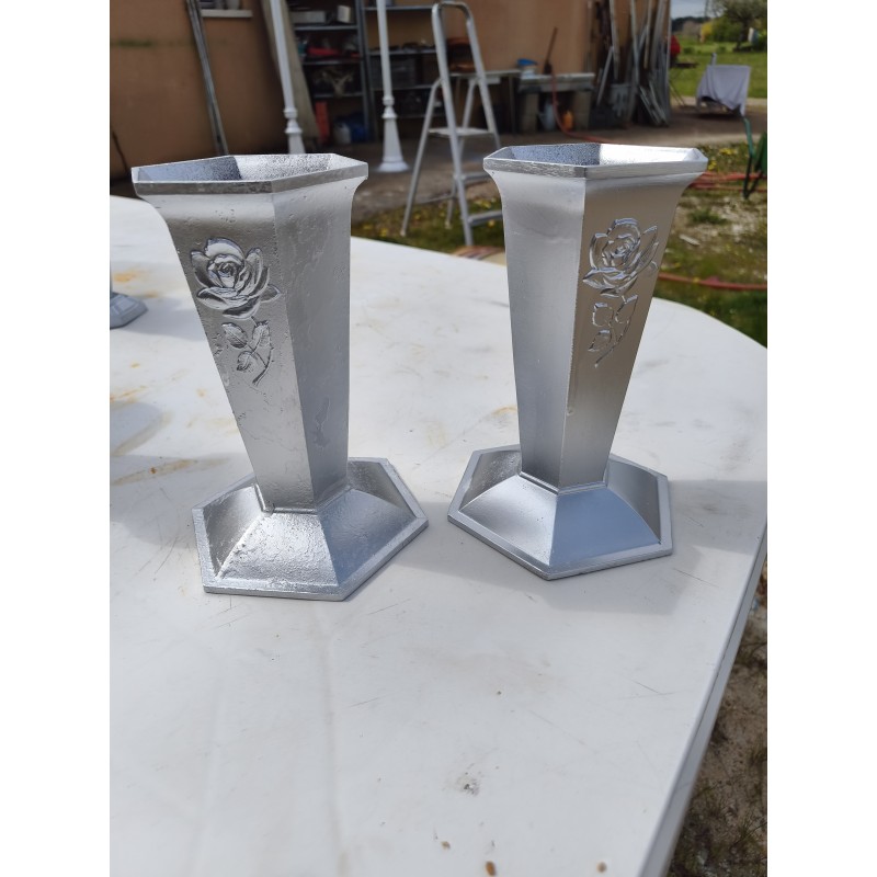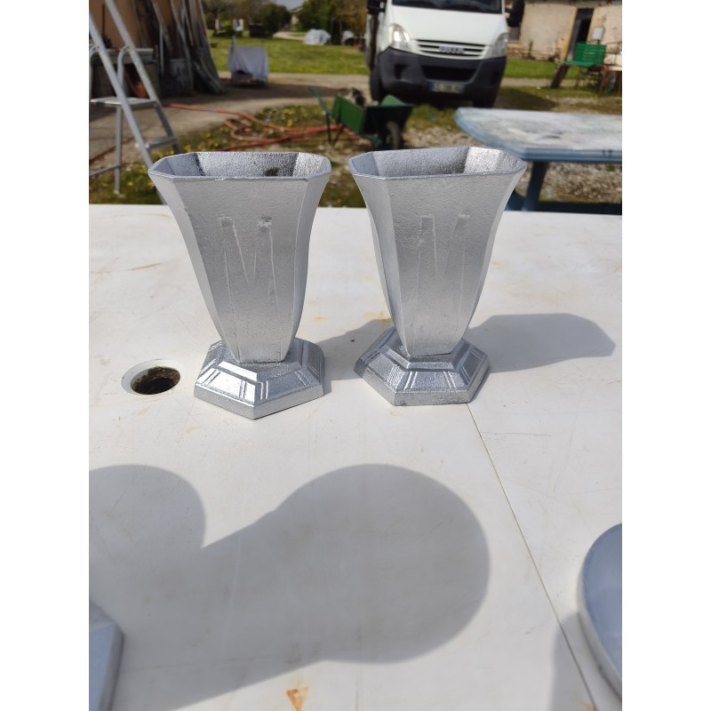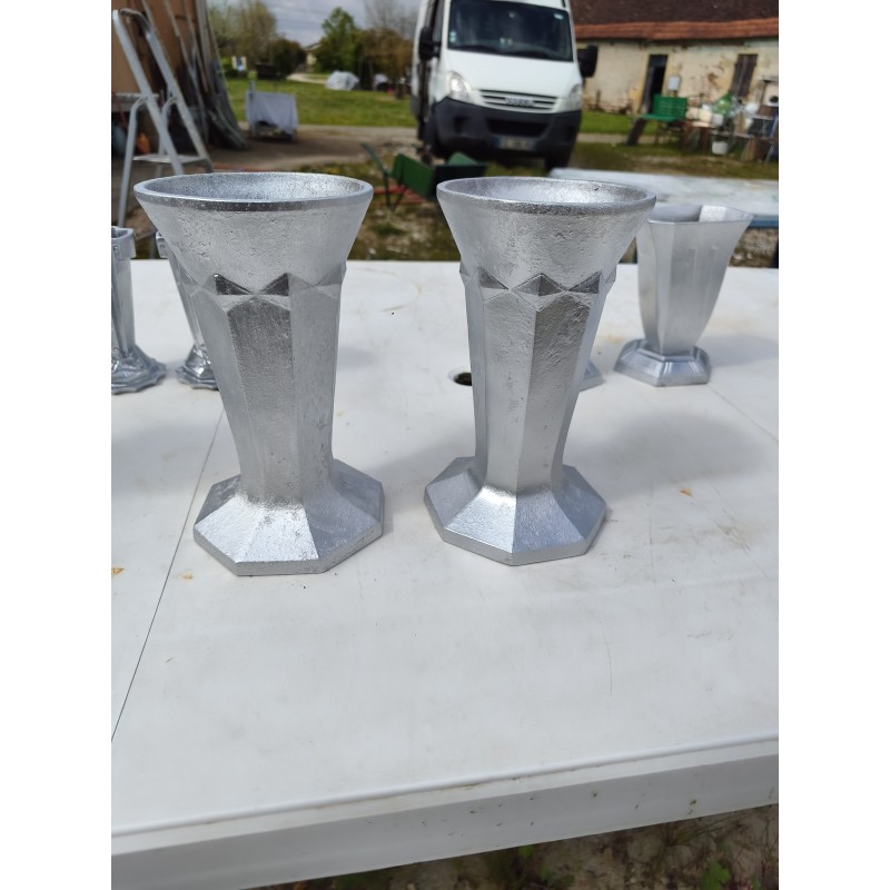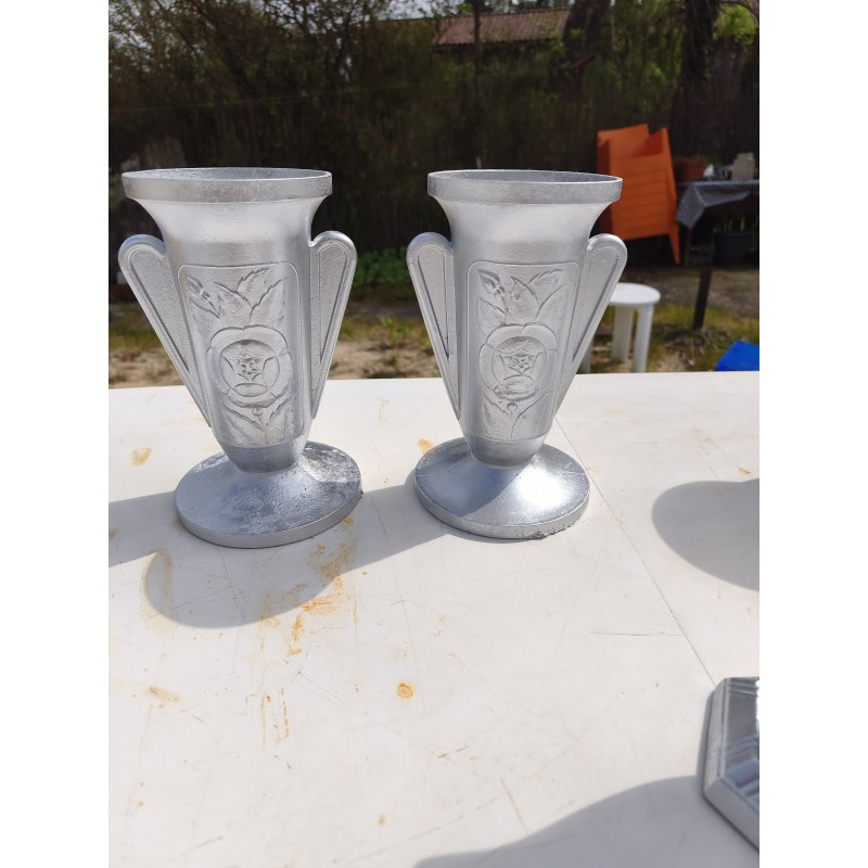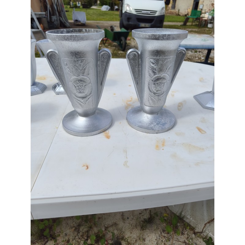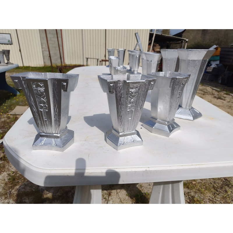 Lot de Vases en Aluminium des Années 30 , 6 Paires + 3 vases , Haut de : 29 cm a 17 cm , long et larg : de 16 cm a 8 cm , très bon état