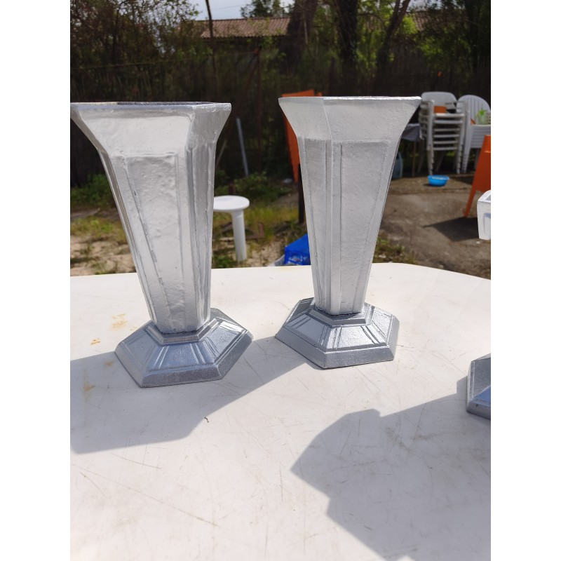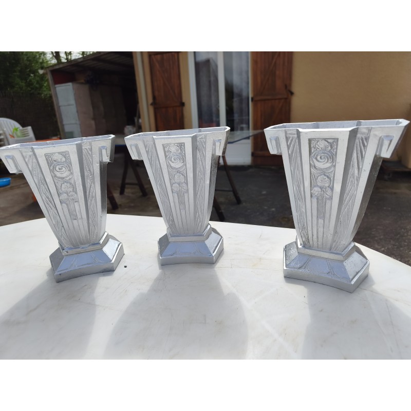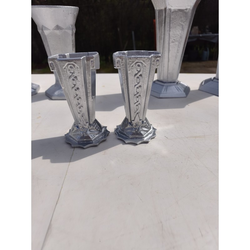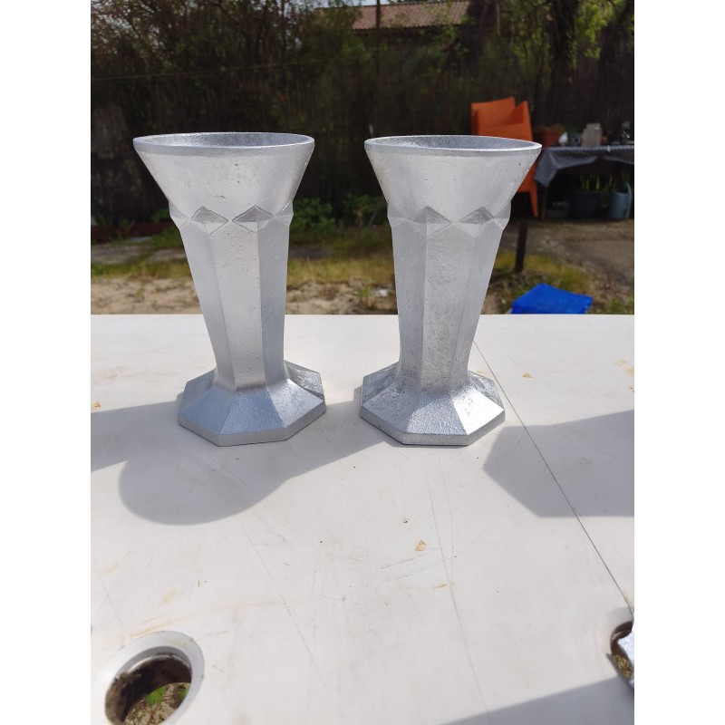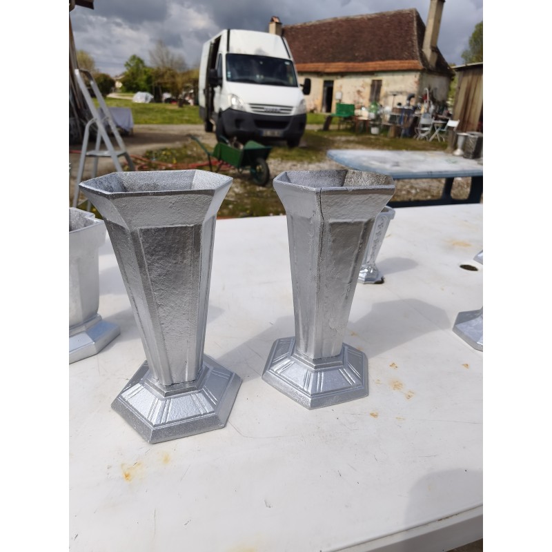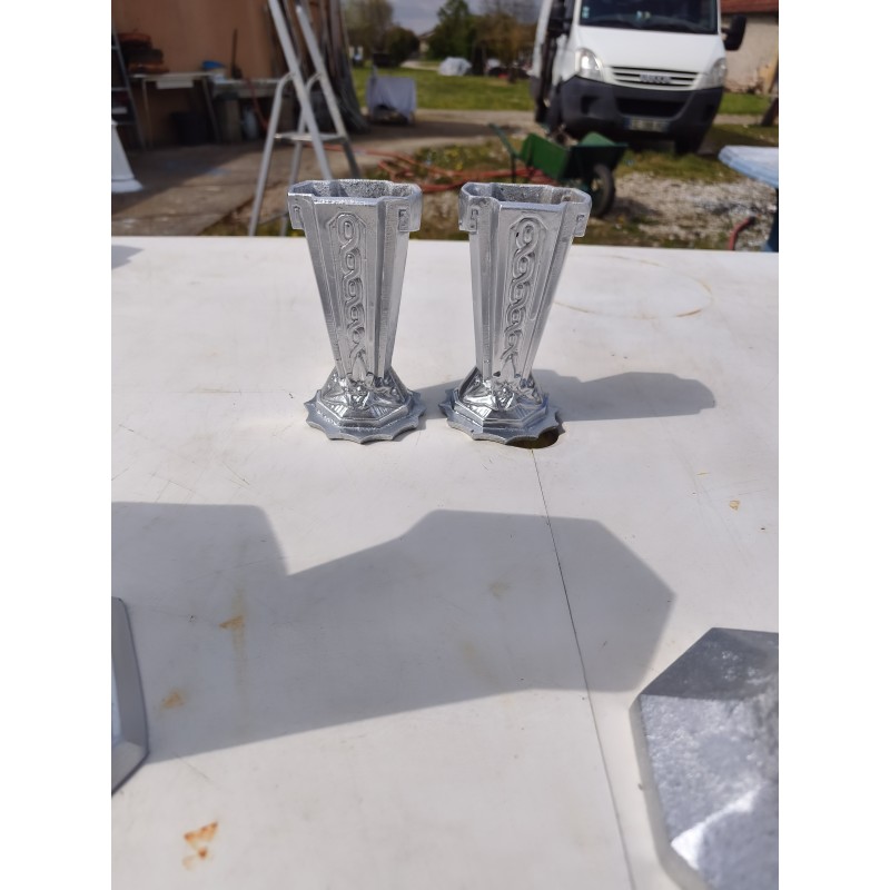 Lot de Vases en Aluminium des Années 30 , 6 Paires + 3 vases , Haut de : 29 cm a 17 cm , long et larg : de 16 cm a 8 cm , très bon état