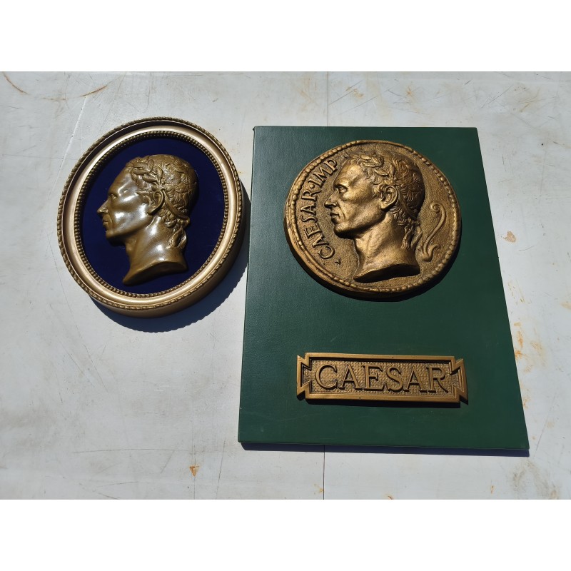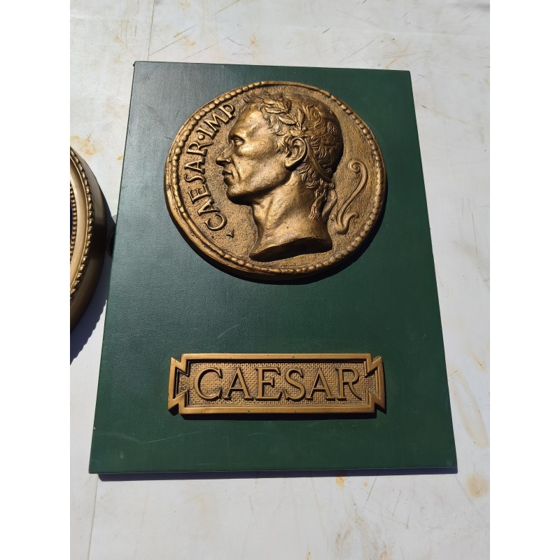 2 Plaques en Platre " César " , provenant du César Palace , éléments décoratifs , Dimensions : 40 cm sur : 30 cm , Médaillon : 22 cm , 2 éme : 27 cm sur 23 cm , très bon état