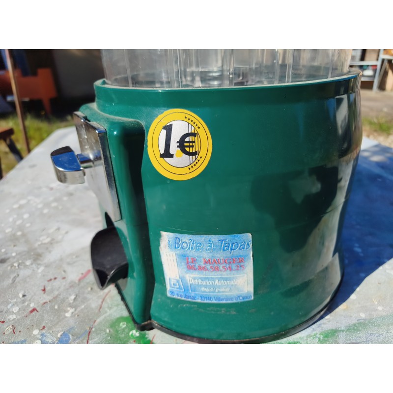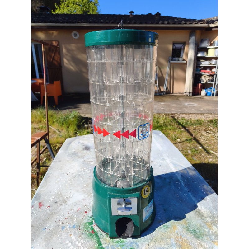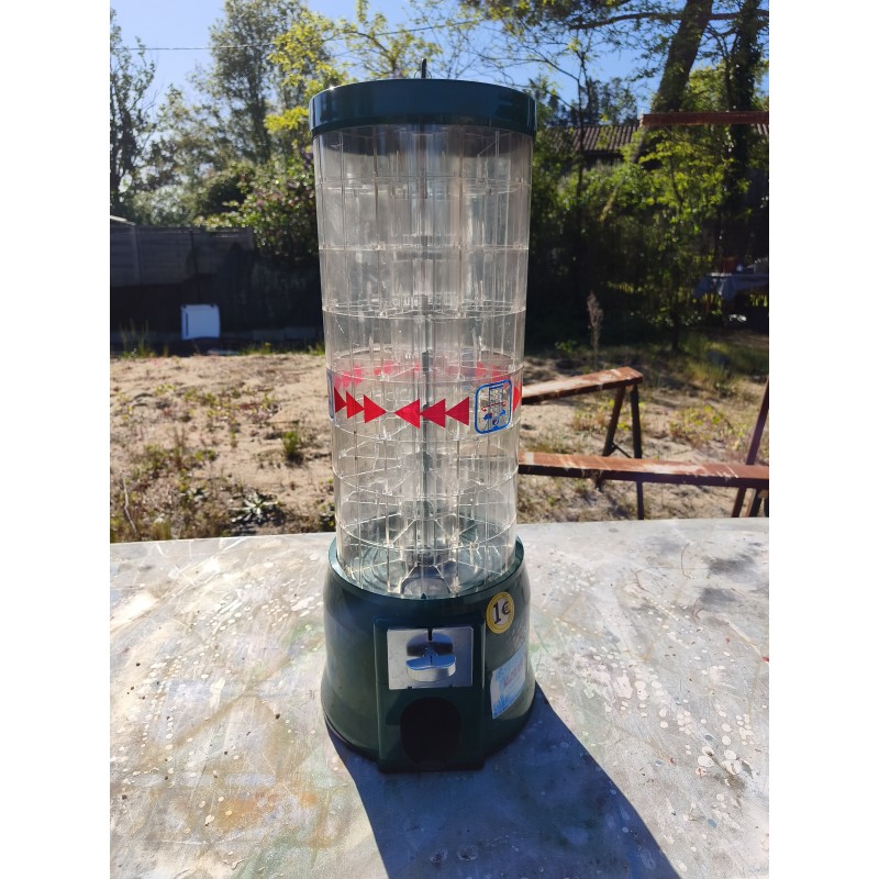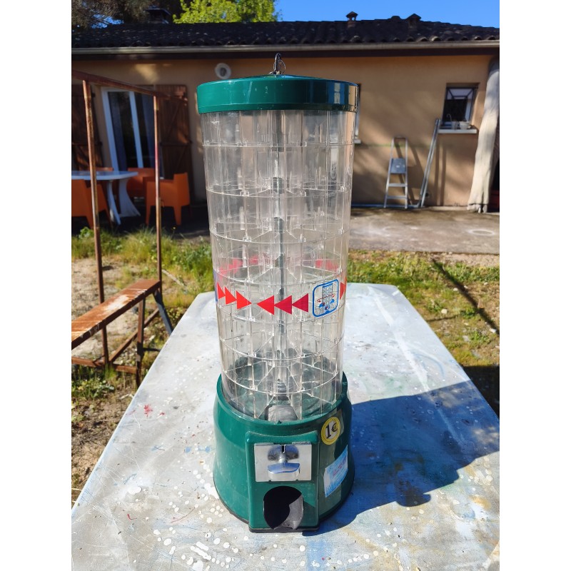 distributeur de cacahuètes , Bonbons , Etc ....... , Haut : 85 cm , Diam : 31 cm , Pièce de 1 € , poids : 7,2 Kg , trés bon ètat de marche et d'aspect , posséde ces clefs