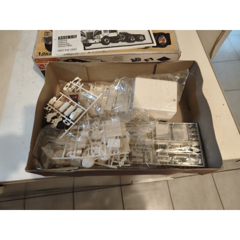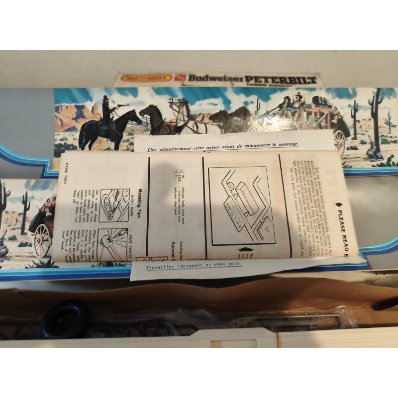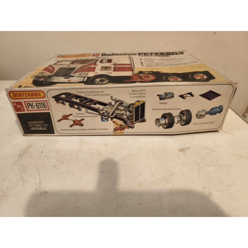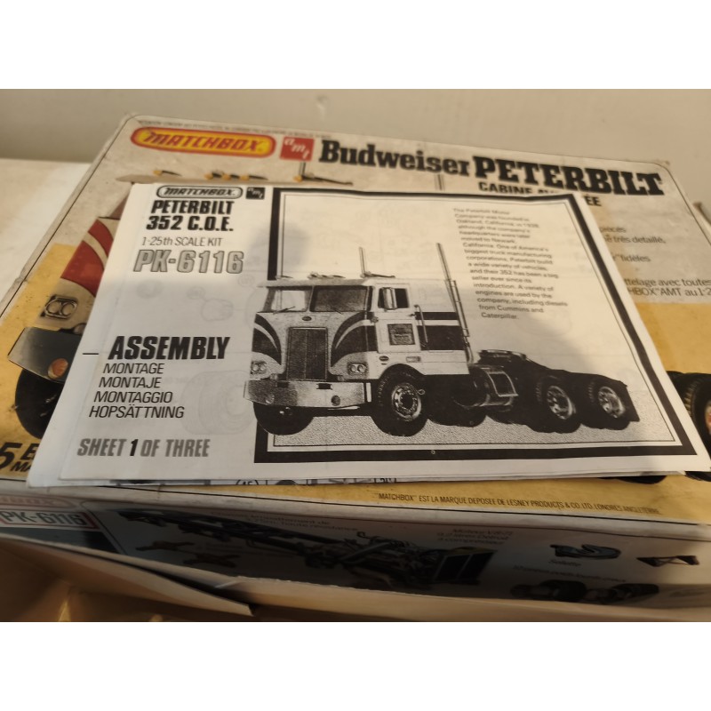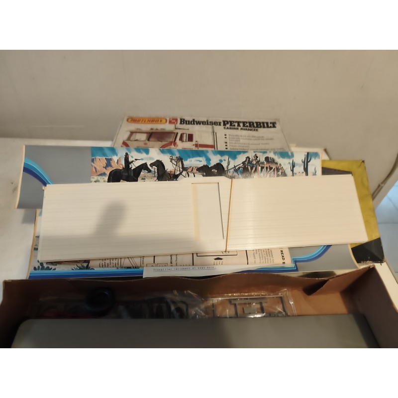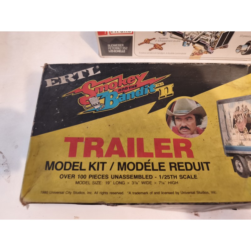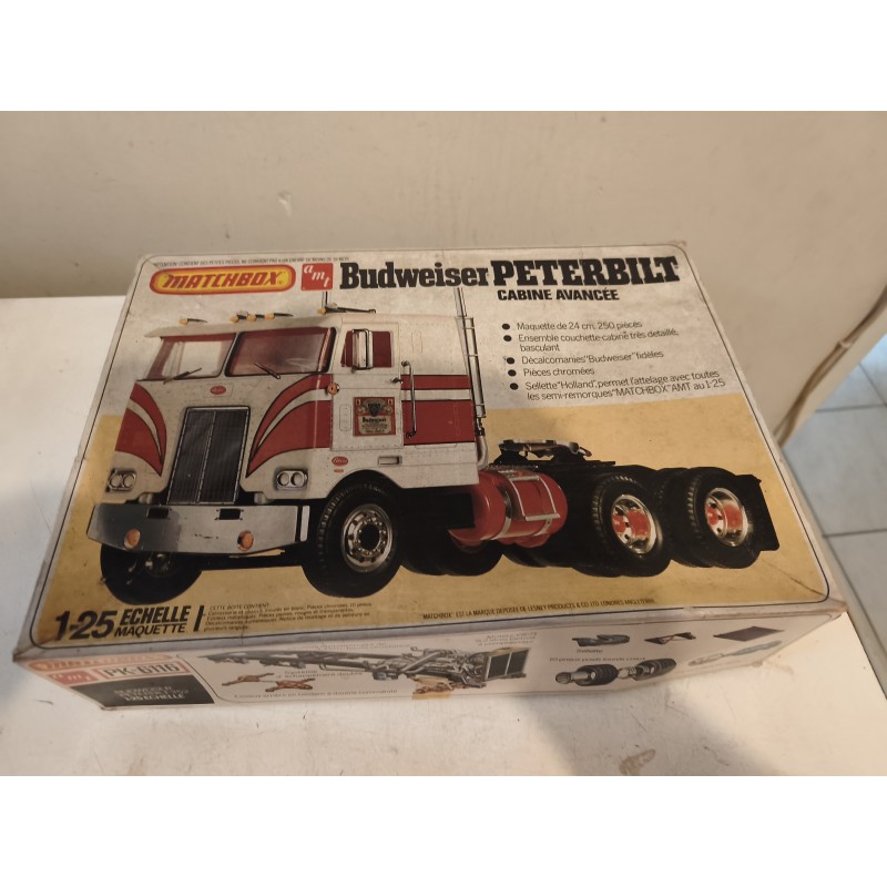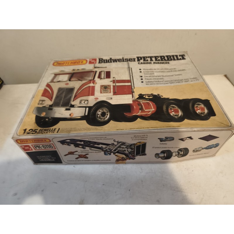 2 Boites de Jouets Anciens , a monter , complets et sous Blisters , Trailer et Matchbox Budweiser Peterbilt , échelle 1/25 , poids Total : 1,5 Kg , très bon état