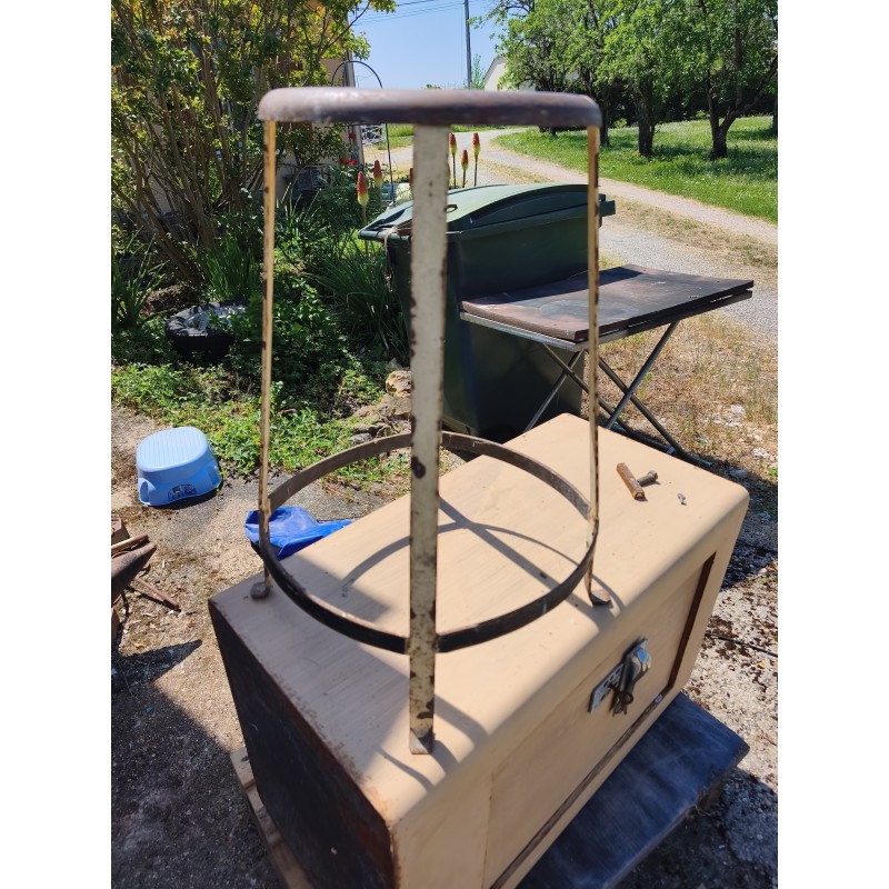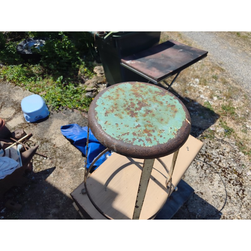 Tabouret Industriel " Nicolle " Haut : 61 cm , Diam pieds : 48 cm , Diam siège : 30 cm , poids : 4 Kg , très bon état dans son jus de l'époque