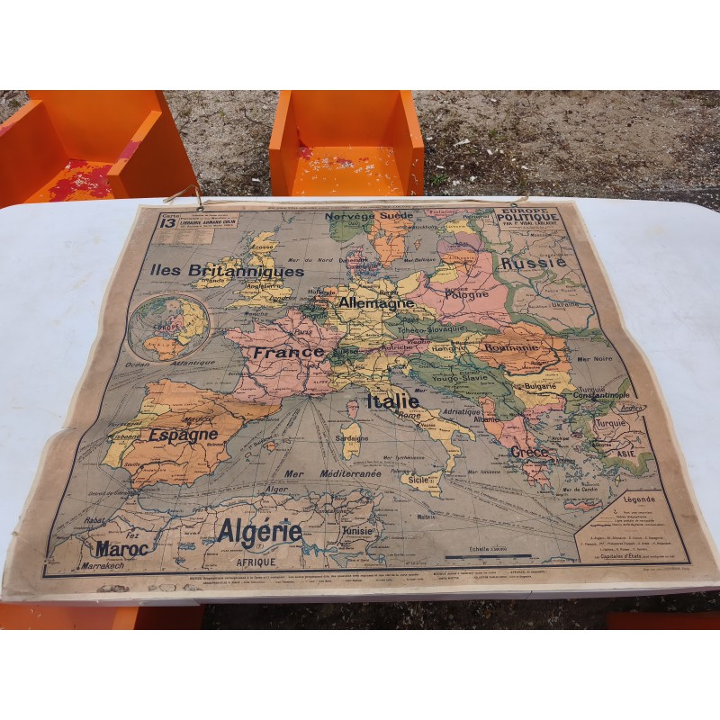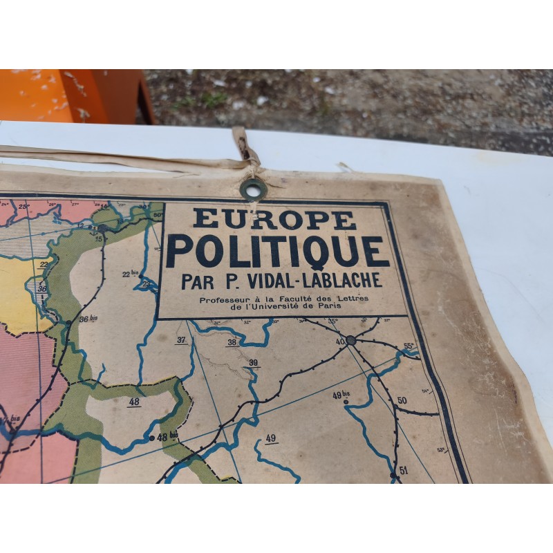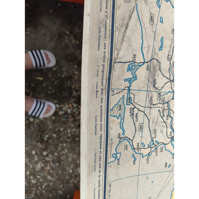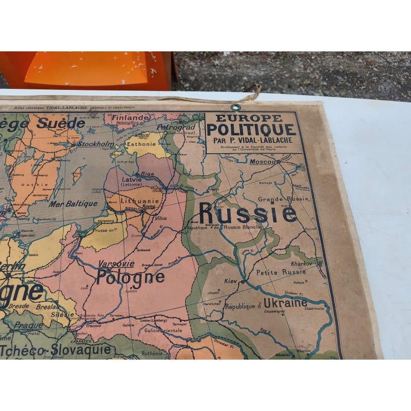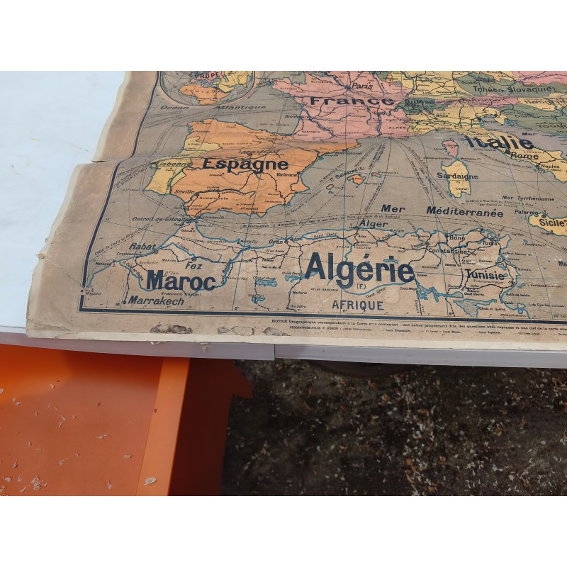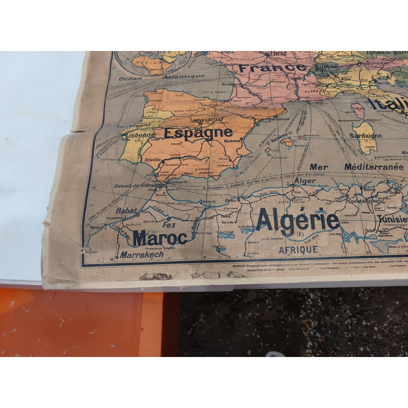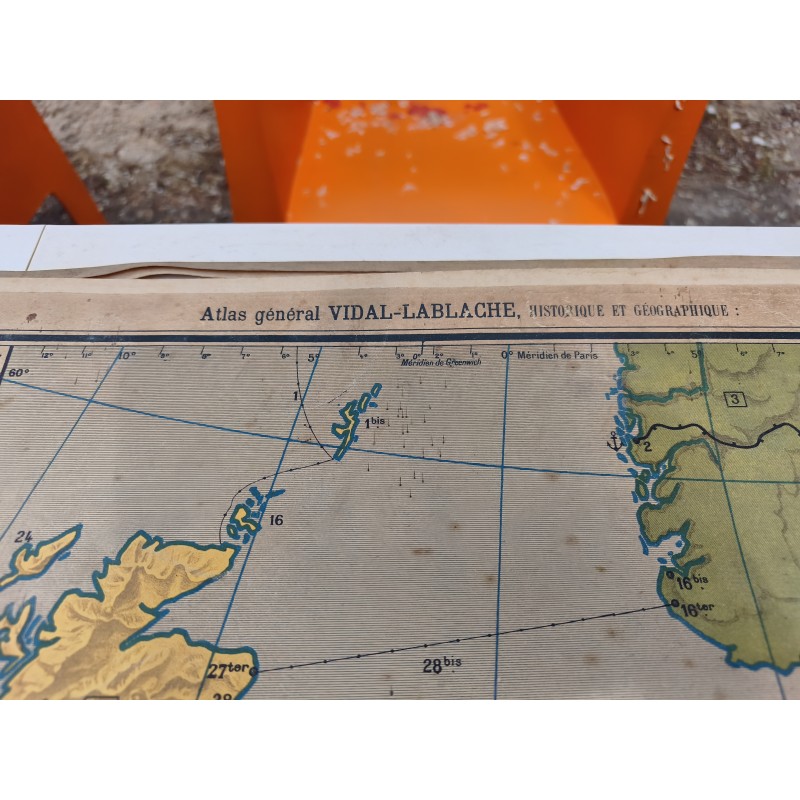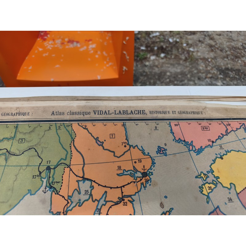 Carte du Monde par P.Vidal Lagache , Cartonné , échelle 3.500.000 , dimensions : 118 cm sur 97 , Double façe , en l'état